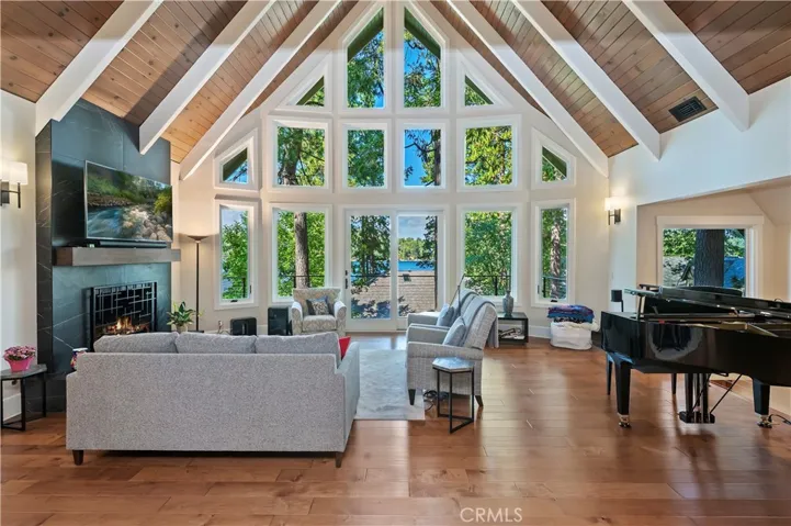 Elevated Living Behind the Gates! Experience style, comfort, and convenience in this beautifully remodeled home (taken down to the studs in 2020). Designed with modern living in mind, soaring vaulted, beamed ceilings with a dramatic wall of glass for enjoying the view of the lake or watch the snow fall. Open-concept kitchen, dining, and great room designed for gatherings and entertainment. The home can be offered furnished with a curated inventory list, making it move-in ready. Every detail was thoughtfully chosen to combine style with comfort, Dock slip pontoon boat and trailer included ensuring an elevated mountain-lake lifestyle. This residence features: