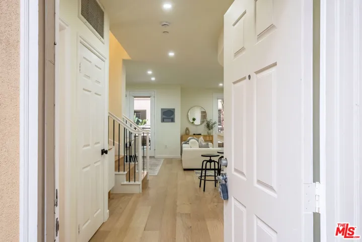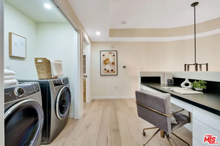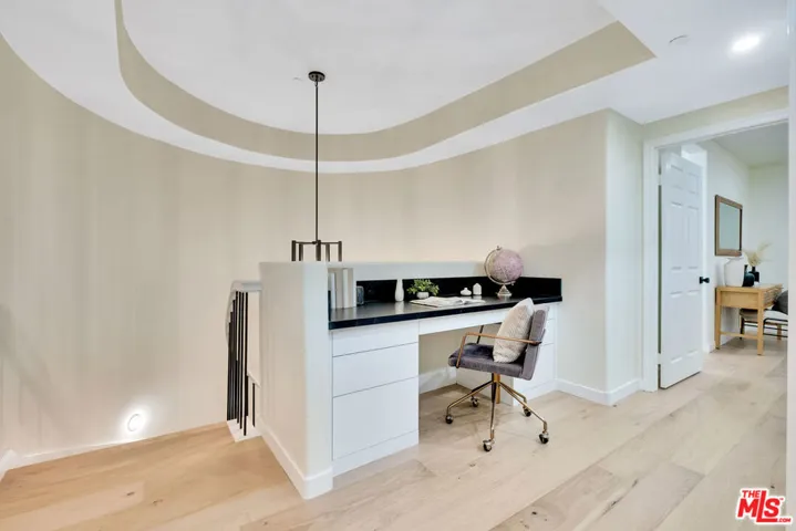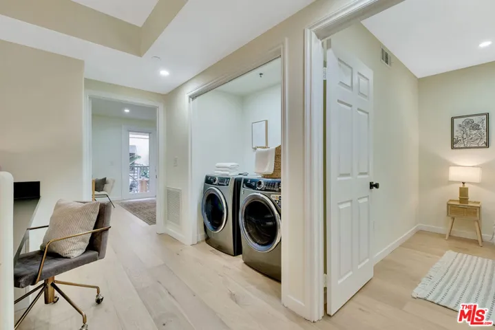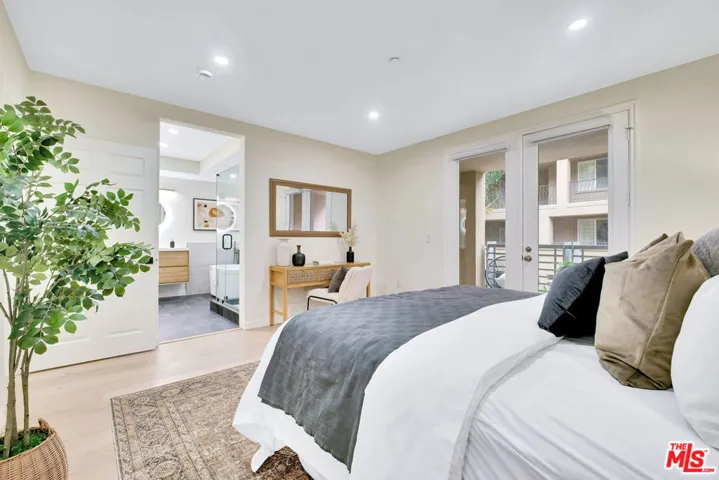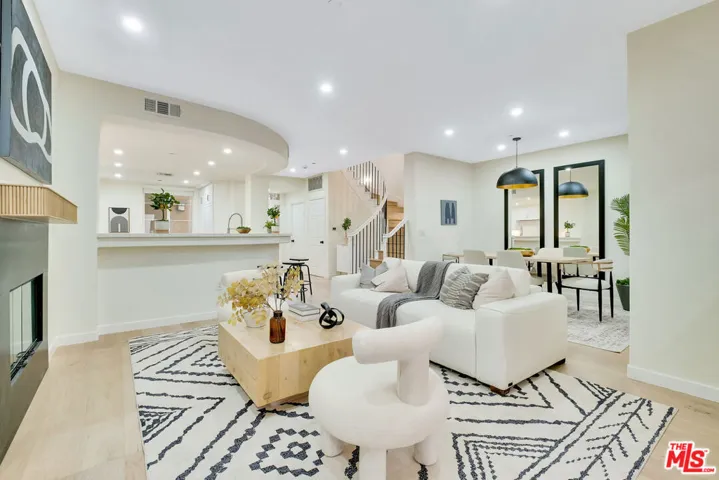 Stunning and meticulously renovated 2-bedroom, 2.5-bath townhouse-style condo located in the highly sought-after Paraiso complex within Phase 1 of Playa Vista. This light-filled home features a fully updated kitchen with refinished cabinets, quartz countertops, bar seating, a cozy breakfast nook, and all new high-grade appliances and fixtures. The kitchen opens seamlessly to the spacious living room, which boasts soaring ceilings, LED recessed lighting, a custom built-in entertainment center, and direct access to a private outdoor space. The dining area is conveniently located just off the kitchen and adjacent to a modern powder room. Upstairs, you’ll find two ensuite bedrooms and a built-in office nook with a custom desk perfect for remote work or study. The luxurious primary suite offers a private balcony, a walk-in closet, and a spa-like bathroom featuring a freestanding soaking tub, a new beautifully tiled shower with a seamless glass enclosure, and designer fixtures. The second ensuite bedroom includes an oversized shower and a newly updated vanity. Additional highlights include central heating and air conditioning, new hardwood flooring throughout, energy-efficient LED recessed lighting, a brand-new side-by-side washer and dryer, and fresh interior paint. Ideally located near parks, the Center Pointe Club, restaurants, and all the amenities of Playa Vista Phase 2, this turnkey home offers the perfect combination of comfort, style, and convenience. Mello Roos amount for this unit is about $2948.68.