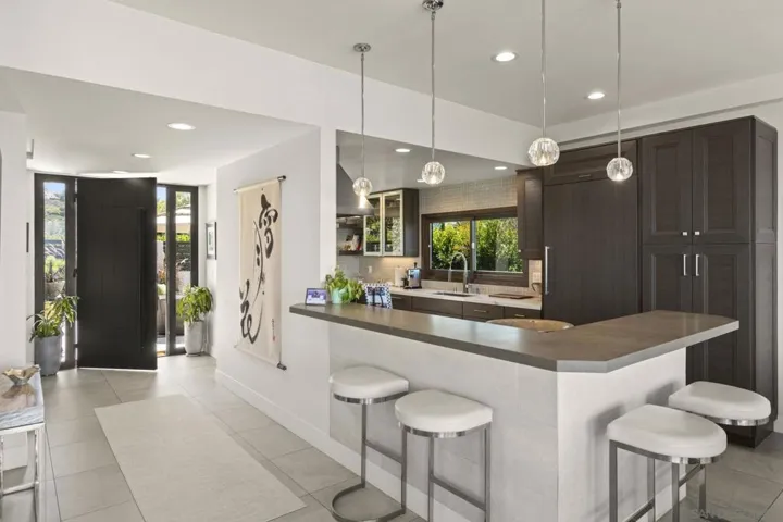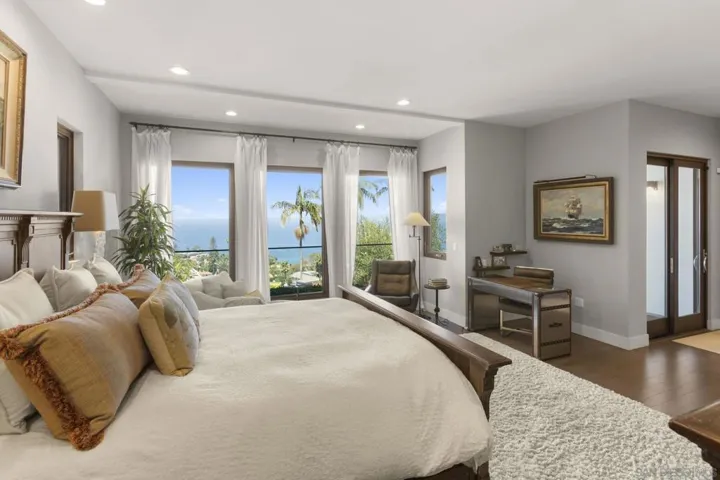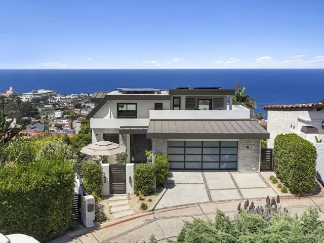 Set high in the prestigious Country Club neighborhood, this gorgeous estate captures sweeping ocean vistas and unforgettable sunsets. Surrounded by the natural beauty of the hills, the home offers a rare blend of privacy, elegance, and breathtaking scenery. Ideally located just minutes from world-class dining and shopping, the property also provides walkable access to the Village, Scripps Pier, and the scenic La Jolla Natural Park trails leading up to Mt. Soledad. Thoughtfully designed over three levels with entry on the main living floor, the residence lives more like a two-story, combining ease of everyday living with the sophistication of a coastal retreat.