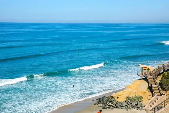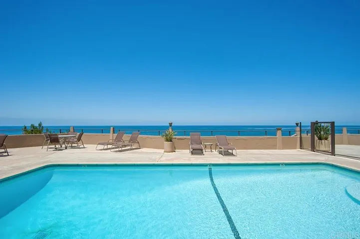 Live at the beach, in the oceanfront gated complex of the Del Mar Beach Club. Nicely upgraded and decorated with a gas fireplace in the living room, 60″ flat screen tv and stainless appliances in the kitchen, washer/dryer, and high speed internet. Enjoy your private patio w/barbeque, and a 2-car carport at the front entry. Walk out to oceanfront view room, private steps to the beach, 4 pools, 2 spas, saunas, tennis/pickleball courts, and gym. Walk to restaurants, shops, Del Mar Race Track, Cedros Design District, train station and more. Can be leased long term.