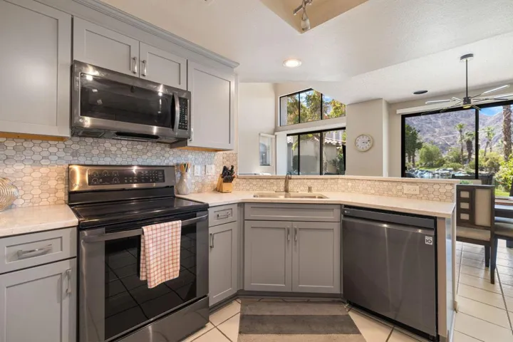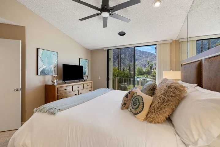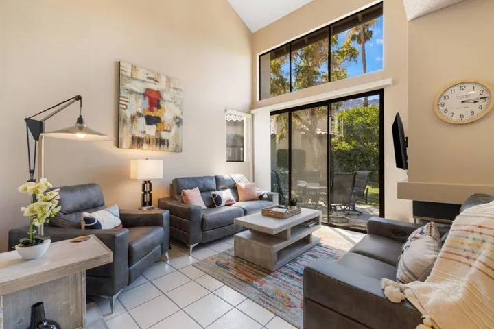 Welcome to 79822 Olympia Fields- stunning best describes this 3 bedroom, 3 full baths, VIEW & private corner lot in prestigious PGA West -Palmer Private community. Let’s start with the Views this property sits on – An elevated pool area with waterfalls and Mountain Views. Truly a resort setting. Just a stone’s throw away. Now the property – Immaculate, kitchen with quartz countertops, attractive backsplash, great SS appliances, and all 3 bathrooms are Beautifully Remodeled, and Turnkey furnished with Neutral tones. Cozy fireplace in family room overlooking that expansive view off your private patio. There’s also a sweet den off the kitchen offering a quiet space for work, reading, etc. Naturally Bright! Bedrooms on an upper level with primary has a balcony on the View side. All bedrooms nicely appointed. Come enjoy the good life – for a vacation, seasonal rental… Flexible! Look forward to hearing from you!