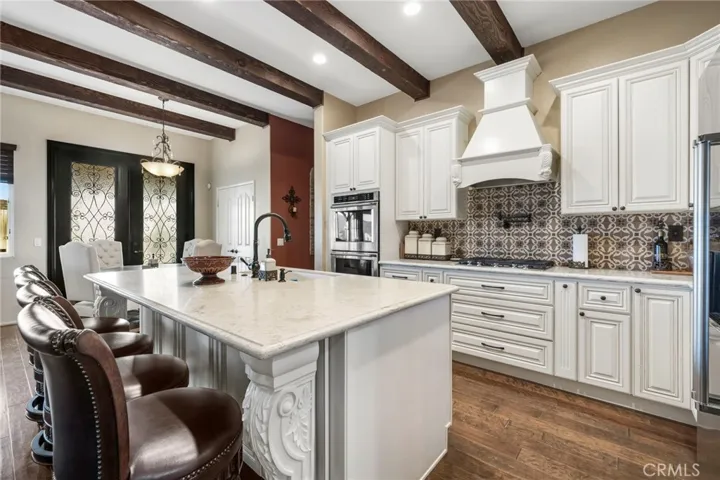 Inside, you’ll find spacious living areas, modern finishes and thoughtful upgrades throughout. The upgraded kitchen features high end Kitchen Aid appliances and finishes. Custom cabinetry. Open floor plan off kitchen to main living area with fireplace and faux beamed ceiling The primary retreat features a fireplace, exterior entry and the ensuite bathroom offers separate shower and soaking tub with ample closet space. Large formal dining room and oversized living room with fireplace. Step outside to your outdoor kitchen oasis, complete with a built-in BBQ, smoker and wood-fired pizza oven and refrigerator — perfect for entertaining under the stars. Whether you’re lounging