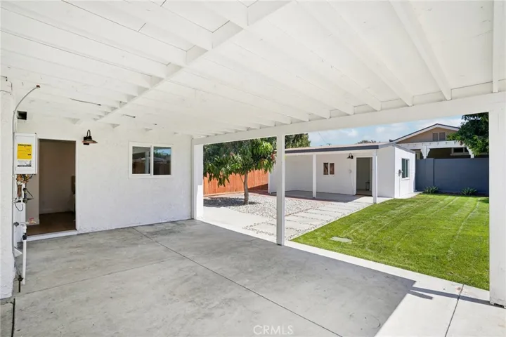 Outdoor living is enhanced with a new covered patio, front and back concrete pavers, fresh landscaping with automated sprinklers, and new fencing on both sides of the property for added privacy. The finished garage includes drywall, epoxy flooring, a new garage door, and automatic opener. A detached bonus room with new siding, windows, roof, concrete, and a mini-split system provides versatile space for a home office, gym, or studio. Located near Riverview Golf Course and Santa Ana College, with quick access to local shops, restaurants, and more.