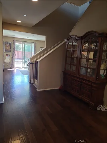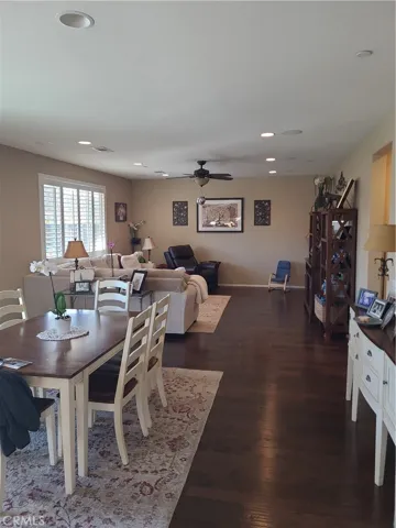 The backyard is an entertainer’s dream, boasting over $50,000 in upgrades including a sparkling pool, spa, extended patio with ceiling fans, and TV outlet. Upstairs you’ll find four additional bedrooms—three with walk-in closets—plus a large laundry room and oversized storage room. The master suite impresses with its generous layout, upgraded closet, and mountain views.