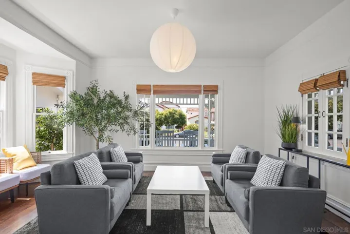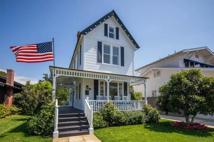 Welcome to your Coronado beach retreat! This beautifully renovated home combines coastal charm with modern comfort, PERFECTLY located just 1 block to the beach, and 1.5 blocks to shops and restaurants. Upon entering the foyer of the home, you are greeted by a spacious light-filled living room with ample seating for family gatherings, cocktails with friends or coffee with just the two of you. It’s the perfect spot to just unwind and relax. Continuing through the home is a cozy dining room and a separate family room with a large sectional and flat-screen television for movie nights! Enjoy cooking in the newly remodeled kitchen which opens to the family room and features sleek finishes and new appliances. With 3 bedrooms and 3.5 baths, there’s plenty of room for family and guests. The second floor features two king bedrooms (both en suite) with desks, while the third floor renovated attic is a sleeping loft that includes a queen bed with a desk ideal for remote work in its own private area and two twin beds in another. There is a conveniently located full bathroom at the foot of the attic stairs for use by those using the loft area. Enjoy air conditioning, indoor laundry, and an outside shower. Relax on the charming front porch in rocking chairs or enjoy al fresco dining and relaxing in the expansive backyard. Bikes and beach chairs are included so you can make the most of all Coronado has to offer! Just a short stroll to the beach, shops, and restaurants, this home puts you in the heart of everything.