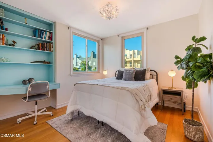 First Time on Market – Luxury Townhome in the Heart of Westwood! This stunning townhome is offered to purchase for the very first time. Nestled on one of the most beautiful tree-lined streets in the area, this impressive townhome sits on the 3rd floor of the exclusive Mayflower Villas, offering gorgeous treetop and city views. With over 2,800 sqft of living space and a massive wraparound balcony, natural sunlight floods every room through large windows and French doors. Elegant curves and high-end finishes define the interior–from the custom kitchen cabinetry, Thermador appliances, and multiple marble fireplaces, to the sculptural staircase that makes a true architectural statement. The main level features a light, neutral interior with hardwood floors throughout, a spacious bedroom with en suite bath, and a fantastic floorplan that includes dual fireplaces in both the family and living rooms, a formal dining room, and powder bath. The gourmet kitchen offers two Sub-Zero refrigerators, an island with seating, a breakfast bar, walk-in pantry, and a full wall of windows with direct access to your wraparound balcony. Upstairs, a versatile loft area is perfect for work or play, complemented by a convenient laundry room and oversized skylights. Two guest bedrooms are generously sized, each with en suite baths and walk-in closets. The primary suite is expansive, featuring a marble fireplace, French doors leading to a private upper balcony, and a luxurious bath with marble finishes, dual vanities, a steam shower, and sunken tub. The oversized walk-in closet includes custom organizers. Additional highlights include American Vision windows and doors, a $10,000 custom kabob grill, fresh interior paint, and four garage parking spaces. With only 10 townhomes in the building, Mayflower Villas offers a private, controlled-access lobby with elevator, a meeting room, newly remodeled gym, pool, and multiple outdoor gathering areas. Low HOA dues. A rare opportunity to own a spacious and stylish townhome in one of Westwood’s most desirable addresses.