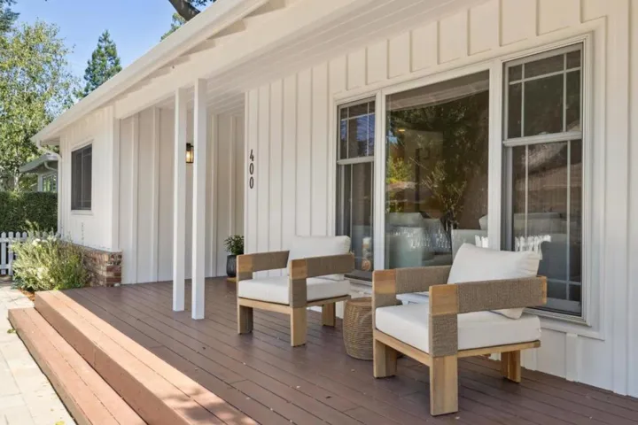 Situated on a desirable corner lot in Menlo Park’s coveted Menlo Oaks neighborhood, this extensively updated residence blends modern style, everyday comfort and Silicon Valley convenience. A welcoming front porch leads to a light-filled living room with a cozy fireplace and expansive picture windows, while the adjacent dining area provides a seamless flow for both intimate dinners and larger gatherings. At the heart of the home, the remodeled kitchen-family great room is ideal for entertaining and daily living, featuring quartz countertops, a large center island with seating and top-tier stainless appliances including a Wolf cooktop, Bosch ovens and dishwasher, and a Samsung French-door refrigerator. The primary suite offers dual walk-in closets and a refreshed bath with dual sinks and a spacious shower. Two additional bedrooms share a remodeled hall bath, and a dedicated home office creates the perfect remote work setting. Outdoors, multiple al fresco dining and lounge areas unfold beneath a charming pergola amid mature landscaping. Energy-efficient features include solar power, 240V EV charger, tankless water heater and Andersen dual-pane windows. Close to top Menlo Park schools, Stanford, downtown Palo Alto, Meta and Hwy 101, this home offers modern living in a prime location.