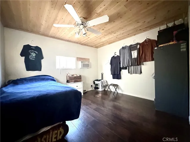 Retreat to the primary bedroom, where you’ll discover a stunning wood-treated ceiling, a ceiling fan, and a convenient air conditioning window unit for those warm summer nights. The remodeled bathroom is a showstopper, boasting a chic walk-in tile shower, a modern vanity with a wood countertop, and a stylish mirror that completes the look.