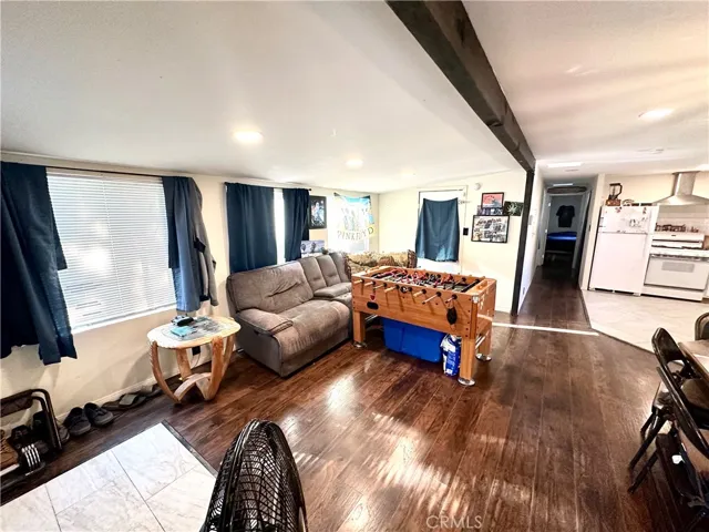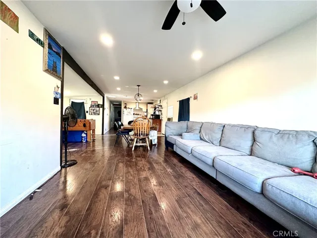 Step inside and be greeted by a spacious open floor plan that perfectly showcases the double-wide design. An abundance of natural light pours through the thoughtfully placed windows, creating a bright and airy atmosphere throughout. You’ll immediately fall in love with the tasteful wood laminate flooring, recessed lighting, ceiling fan, modern light fixtures, and beautiful faux beams that add a touch of elegance to your new home.