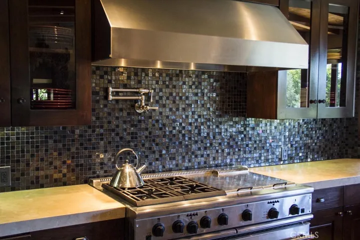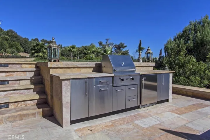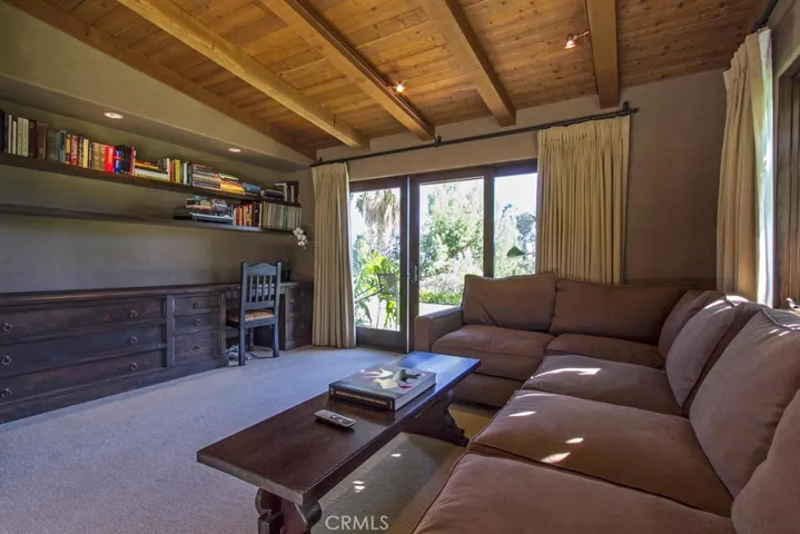 Move-in ready! Ocean View 1 story custom home behind a double-gated entry. Highly upgraded home has 4 bed + 4 bath w/ approximately 3,700 square feet. The vast 1 acre property boasts ocean views, lush landscaping, fruit trees, organic garden, a huge grassy area overlooking the Pacific, & massive stonework surrounding the spa, BBQ center, & party deck w/observation area. Enter onto the stone floors & into the great room w/stone fireplace, built-in book cases, & flat screen TV w/surround sound, all under high wood-beamed ceilings & open to the custom & remodeled cook’s kitchen w/professional range, pot filler, Sub Zero professional refrigerator/freezer, stone counters, mosaic tiled backsplash, wine fridge, & center island. Bi-fold doors in the great room invites ideal indoor/outdoor living. The master suite features ocean views, a warm & inviting fireplace w/flat screen TV above, French doors leading to the yard and spa, a large sitting area with built-in desk and bookshelves, and a remodeled master bath with a European-styled enclosed steam shower and bath combination. Let’s not forget the custom home theater with surround sound and a lofted viewing lounge. 2 of the bedrooms are presently set up as a music studio & control room but can be easily restored as bedrooms. Stunning!