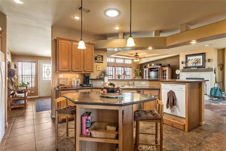 The home has 3 bedrooms and 3 full bathrooms, with a bright and open layout. The main living space features vaulted ceilings, a cozy wood-burning fireplace, and tons of windows that let in natural light and mountain views. The kitchen is spacious and super functional, with an island, breakfast bar, all the must-haves, a pantry, and room for two refrigerators. There’s also a big dining area perfect for hosting, and a large laundry/mudroom with space for a freezer. The primary suite is massive, with its own sitting or office area, walk-in closet, private bathroom with dual sinks and a shower, and direct access outside to take in the Mt. San Jacinto views from your 2024 spa tub. For horse lovers, this property is ready to go: