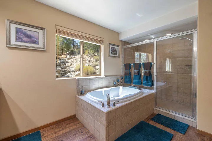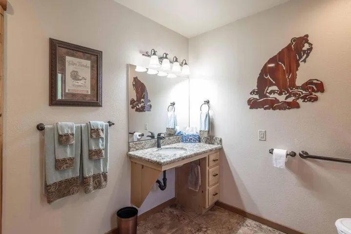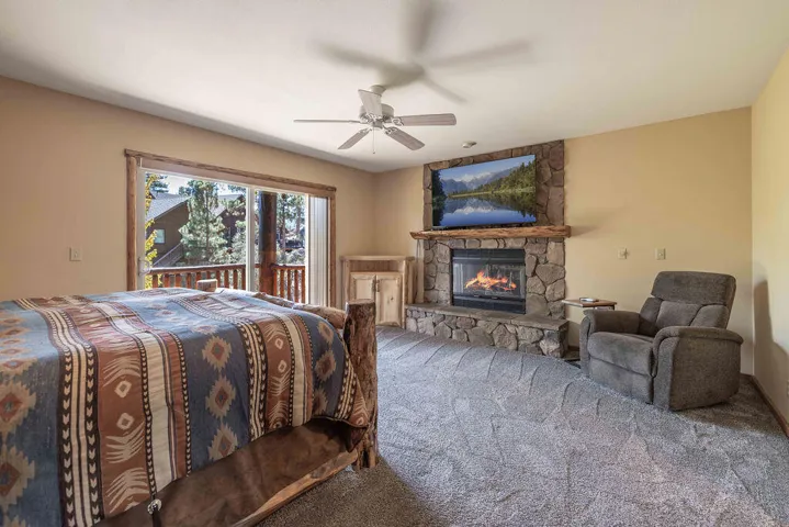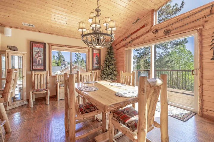 Beautiful Log-Style Mountain Home in prime Castle Glen Big Bear location! This well-maintained 3 bed, 3 bath home + bonus room is located on a cul-de-sac with low traffic. Vaulted tongue-and-groove ceilings and an open floor plan create a warm, spacious feel. The main level features the living room, spacious kitchen with granite countertops and knotty alder cabinetry, an oversized 3/4 bath, and bonus room that can serve as a 4th bedroom or office. Updated luxury vinyl wood like flooring upstairs and in hallways and baths downstairs; bedrooms are carpeted. En suite primary bedroom includes a fireplace, huge walk-in closet, jacuzzi soaking tub & separate shower. All bedrooms have sliding glass doors to the lower rear deck. Enjoy outdoor living with covered front porch and rear decks on both levels. Efficient vinyl dual-pane windows throughout. Attached 2-car garage. Never used as a rental–pride of ownership throughout. Centrally located near Big Bear Lake, Bear Mountain ski slopes, Golf, Big Bear Zoo, the village, dining & more!