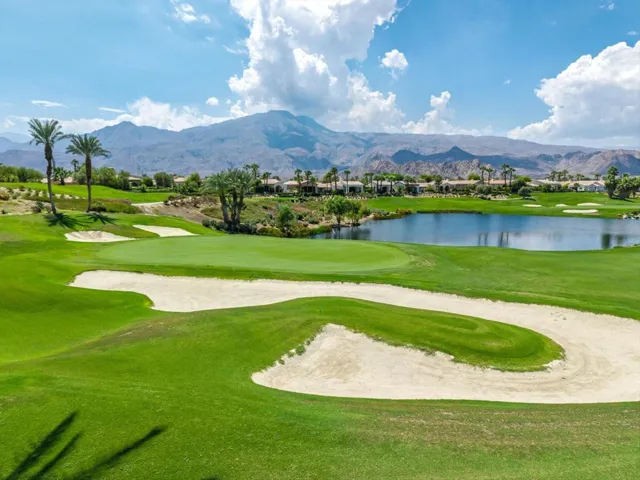 Elevated above the 4th green, this residence captures sweeping South-West views of the Rees Jones designed course, shimmering lake, and the majestic Santa Rosa and Coral Mountains. Step inside to an open floor plan highlighted by elegant travertine floors, crown molding, recessed lighting, and expansive motorized walls of glass that disappear with the push of a button, creating seamless indoor/outdoor living. The gourmet kitchen is equipped with upgraded cabinetry, Wolf/Sub-Zero appliances, two dishwashers, a wet bar, and a morning room that takes in the spectacular views. A temperature-controlled wine room adds the perfect touch for wine enthusiasts, while a dedicated office provides a quiet retreat for work or study. The luxurious primary suite features a cozy fireplace and a spa-inspired bathroom with direct patio access. Guests will enjoy the detached casita, complete with a fireplace in the living room, bedroom, bathroom, and kitchenette. The backyard is a true entertainer’s dream, boasting a custom pool and spa, an outdoor kitchen with BBQ, smoker, and bar seating, plus a fire pit to gather around on cool desert nights. A large side yard with a private horseshoe court completes this exceptional outdoor living experience. Come live the life you’ve always imagined!
