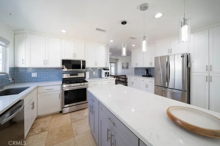 Welcome to this beautifully updated single-story residence in the highly desirable community of West Hills. This 4-bedroom, 2-bathroom home offers approximately 1,700 square feet of comfortable living space with a modern, open-concept design. The inviting layout features a chef’s kitchen with quartz countertops, stainless steel appliances, custom cabinetry, and a spacious center island that opens seamlessly to the dining and living areas. High ceilings, recessed lighting, and expansive sliding glass doors bring in natural light and create a bright, airy ambiance. The family room fireplace provides warmth and character, making this home ideal for both daily living and entertaining.