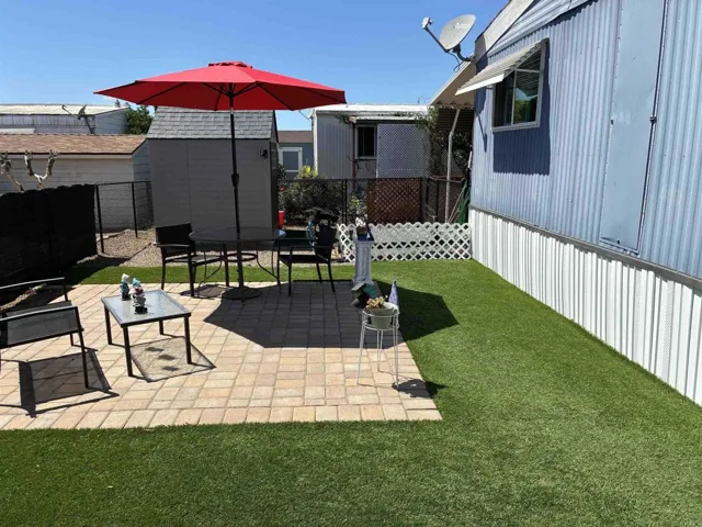 Cute home with large yard and NO property taxes! The spacious yard has been fully fenced and upgraded with turf, plus two newer Rubbermaid sheds and a raised garden planter box. Spend time outdoors on the back patio or raised covered porch. The interior boasts many recent upgrades within the last 2-3 years including most windows having been upgraded, new water heater, refrigerator, and disposal. Other upgrades done by previous owner include: Newer counters in the Kitchen & Bathroom and a Newer furnace! Walk in closet. Stackable washer and dryer convey along with the refrigerator and stove/oven. Walking distance to Sprouts, Albertsons, Rite Aid, dining & shopping, near Downtown Vista; breweries, movie theater, transportation, Moonlight Amphitheater & a short drive to beaches!