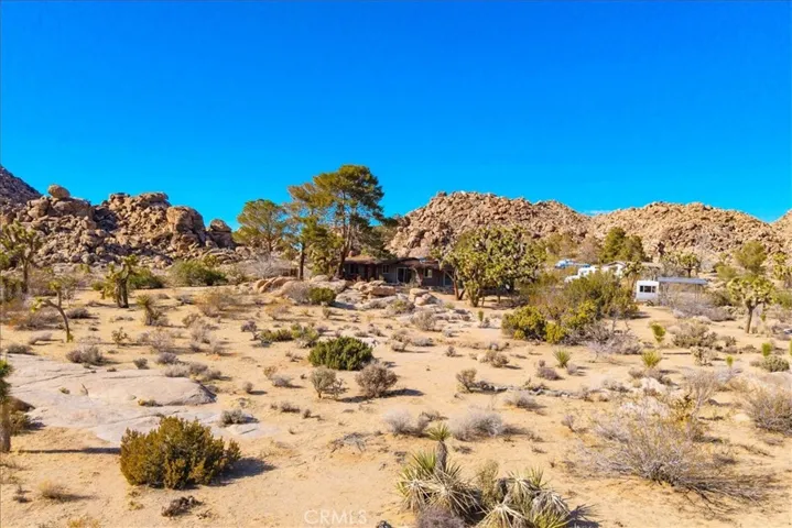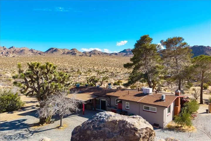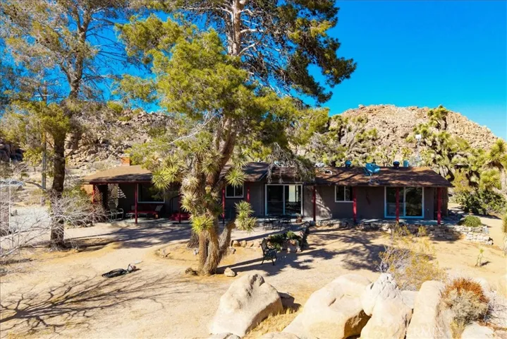 This cozy 3-bedroom, 2-bath home is tucked away amid giant boulders, huge ancient Joshua trees, and the shade of tall pines. The property invites you to experience the wonders of desert wildlife, including hawks, owls, tortoises, bobcats, and coyotes.