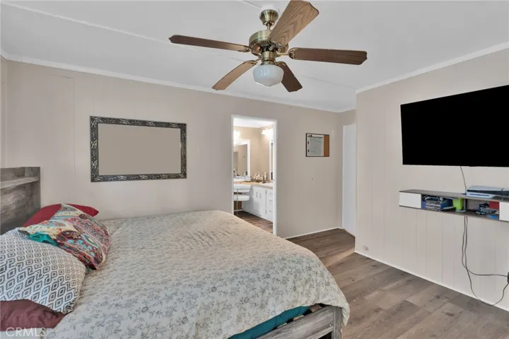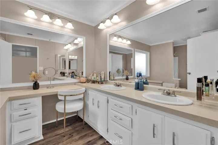 Welcome to this beautifully maintained 2-bedroom, 2-bathroom home offering 1,344 sq.ft. of living space in a desirable mobile home community. Step inside to find an open and inviting floor plan with plenty of natural light & spacious bedrooms. The home has been thoughtfully updated with wood floors throughout, with a recently updated & painted kitchen, featuring a gas stovetop. Climate-controlled windows, and a brand-new A/C system with updated parts within the past 2 years.
