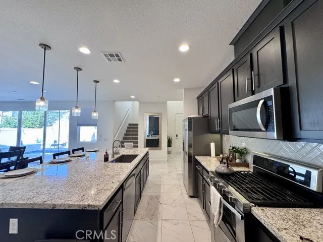 Welcome to this stunning two story, 4 bedroom, 4.5 bathroom home with a loft, located in the highly desirable Brighton at the Promontory community of Murrieta! Boasting exceptional curb appeal, this residence blends elegance, comfort, and functionality. Inside, you’re greeted by soaring ceilings, abundant natural light, and beautiful marble flooring that enhance the open floor plan. The main level includes a private bedroom with a full en-suite bathroom, plus a convenient half bath for guests. At the heart of the home is the chef’s kitchen, featuring granite countertops, modern appliances, a spacious island, and seamless flow into the expansive family room. The family room is warm and inviting, with large windows that fill the space with light. Upstairs, you’ll find a versatile loft, perfect for a home office, playroom, or media space. Each of the secondary bedrooms is generously sized and comes with its own attached full bathroom, offering comfort and privacy. The laundry room is also upstairs and includes ample storage and a sink for convenience. The luxurious primary suite is a true retreat, complete with dual walk-in closets and a spa-like bathroom featuring dual sinks, a soaking tub, and a separate shower. The backyard is designed for year-round enjoyment with low-maintenance landscaping, a cocktail pool with optional heating and saltwater system, perfect for entertaining or relaxing. BONUS: This home offers a EV charger as well as pool service! The Brighton community offers parks, dog parks, and walking trails, and is located within the award-winning Temecula Unified School District, just minutes from shopping, dining, and Temecula’s famous wineries. Don’t miss the opportunity to make this exceptional home yours, schedule a showing today!