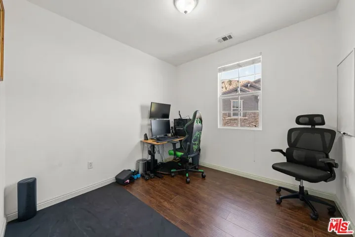 Peacefully tucked into the foothills of Rancho Cascades (Sylmar area), this Legends at Cascades condo offers mountain views, natural light, and a calm, serene setting. Hardwood floors run throughout the home with tile in the bathrooms, and multiple balconies provide space to enjoy the scenery. Open living room and dining area combination for relaxed living. The kitchen is equipped with custom wood cabinets, stone countertops, stainless steel appliances, including a refrigerator with water-line, ice maker, and dishwasher. A shoe closet is conveniently located near the entry staircase. The primary bedroom features an en suite bath with an expansive walk-in closet and opens to a private terrace. The second bedroom includes a generous closet of its own. Additional highlights include in-unit laundry and a private two-car garage with an electric vehicle charger. Community amenities include a pool, spa, BBQ, and playground, all within a dedicated, secure area. With shopping, dining, and freeway access just minutes away, this home provides all of life’s necessities and comforts.