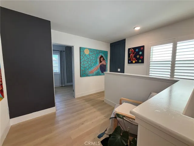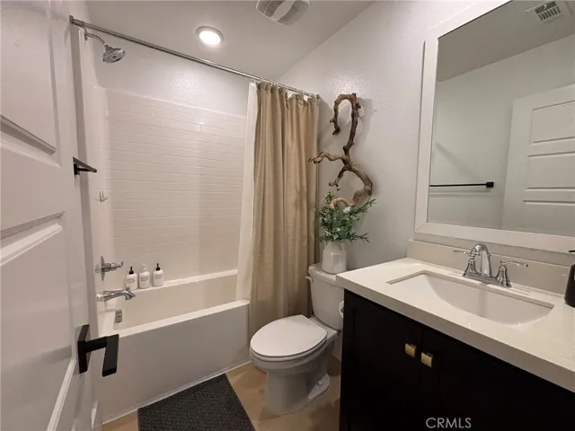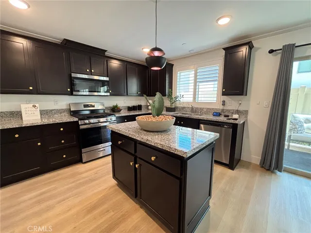 This inviting four-bedroom home is nestled within the gated community of Westlake. The main floor features a spacious bedroom and a full bathroom, providing flexibility and convenience for guests or family members. Throughout the home, plantation shutters and laminate flooring create a sense of modern elegance and easy maintenance. The kitchen is open to a dining and family room area with easy access to the private, covered patio. Upstairs, you will find a spacious primary suite with dual vanity and a generous sized walk-in closet. A versatile bonus room offers the ideal space for a home office, study, or creative studio. Designed for practicality, the laundry room is also located upstairs. This property comes complete with a washer, dryer, and refrigerator, ensuring a seamless move-in experience. Built to be energy efficient with paid solar panels providing sustainable energy and reducing utility costs. The association amenities include a pool, spa, playground, BBQ area and designated dog area. Near Launch Pointe, Lakeside High School & Ortega Highway.