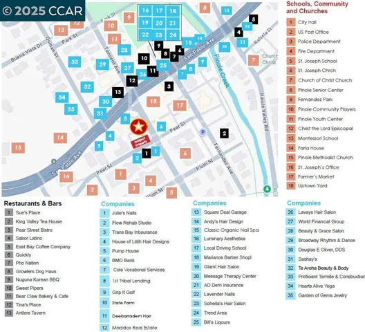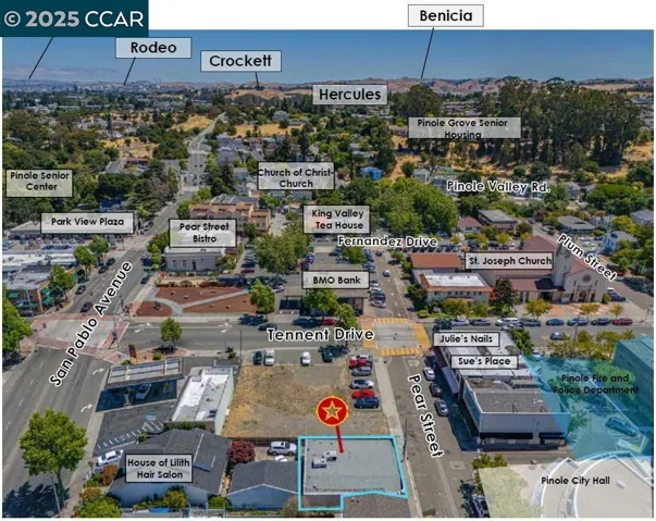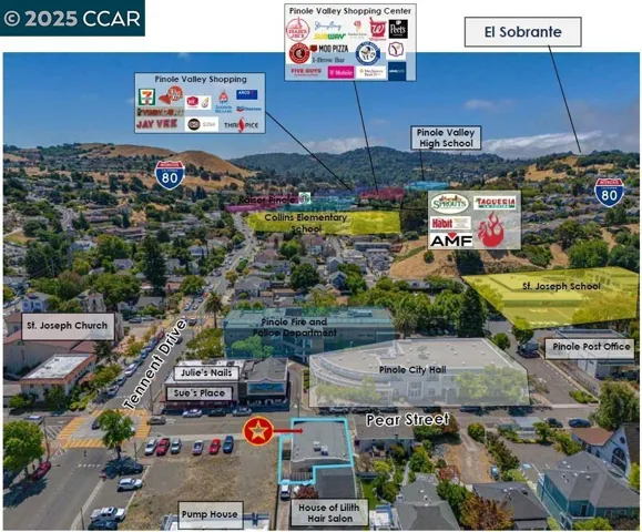 Office / retail space at 2200-2220 Pear Street in Pinole, CA, for lease. With prominent street visibility directly in front of the City of Pinole City Hall, the space is ideal for any user looking to be in the core area of Downtown Pinole. The building contains a total of ±1,872 sq. ft. of space available total. Originally designed as two separate units measuring ±936 sq. ft. each with their own entrances and separate gas and electric meters, the spaces have since been combined into one larger, flowing unit. The owner would consider demising the spaces back to their original size. The space has three (3) restrooms in total, including a shower. The property is located within walking distance to Old Town Pinole with various restaurants, and a short distance to local establishments in nearby Hercules, El Sobrante, and other parts of Pinole. A quick drive provides quick access to Highway 80, allowing easy connections to San Francisco, Berkeley, and Oakland.