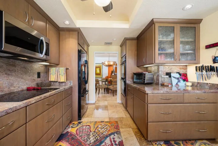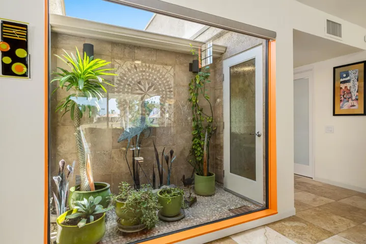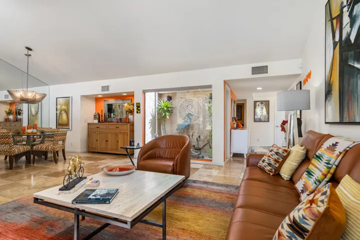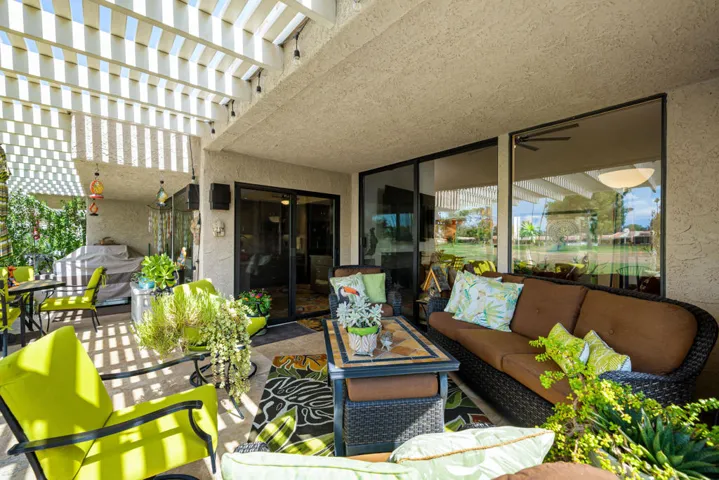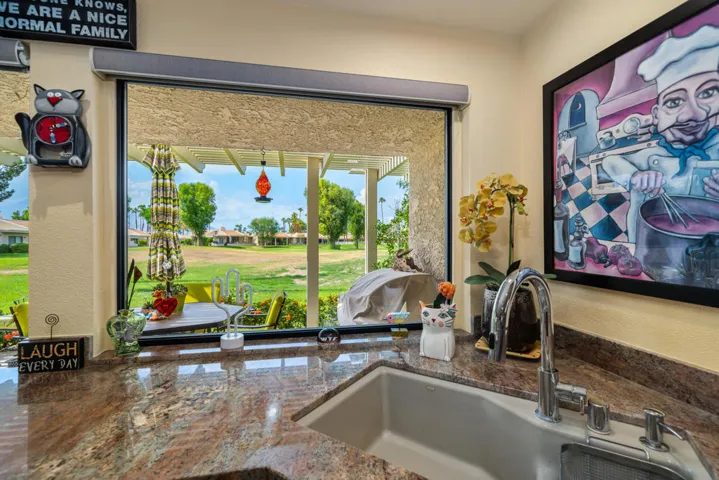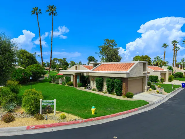 Welcome to this stunningly remodeled 3-bedroom, 2-bathroom condo in the gated community of Cathedral Canyon Country Club. Perfectly situated with a west-facing backyard, this home captures breathtaking golf course and mountain views that are rarely found in such a peaceful, picturesque setting.Inside, elegant travertine flooring flows throughout, complementing the fully equipped gourmet kitchen. A custom built-in fireplace adds warmth to the living area, while a bright atrium brings in natural light and creates an airy, open feel. For year-round comfort, the home has recently been upgraded with a brand-new AC unit.The spacious primary suite is a private retreat with an en-suite bathroom featuring a dual vanity and walk-in shower, plus its very own private patio–ideal for morning coffee or quiet relaxation. Two additional bedrooms are generously sized and share a beautifully updated bathroom highlighted by skylight accents for a spa-like touch.Outside, the expansive patio is perfect for entertaining guests or soaking in the dramatic sunsets over the fairway and mountains. Professional landscaping completes the picture, adding to the home’s elegance and curb appeal.Meticulously remodeled and thoughtfully updated, this condo blends timeless design with modern upgrades for the ultimate desert living experience.