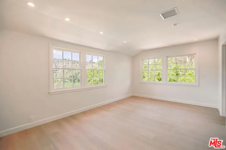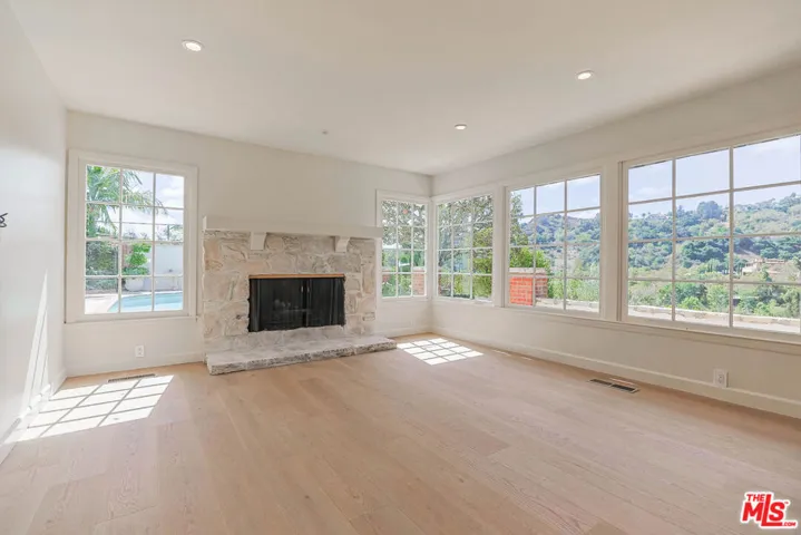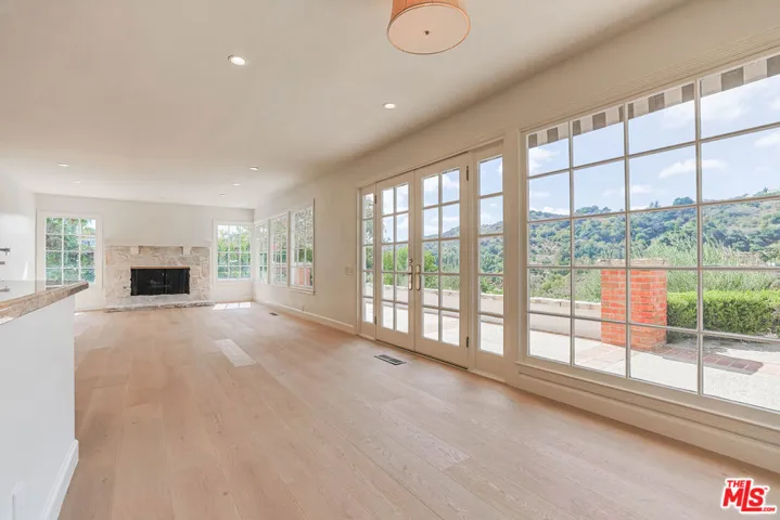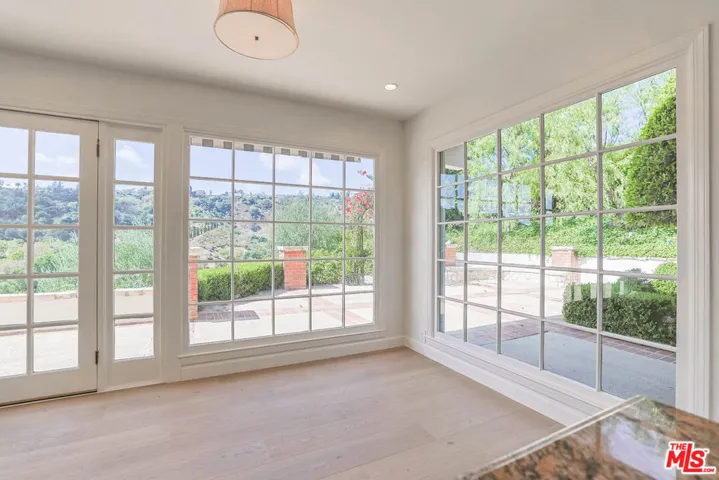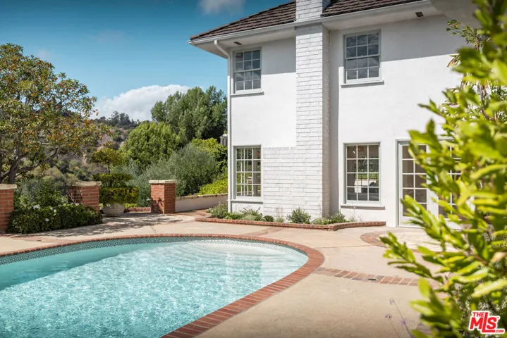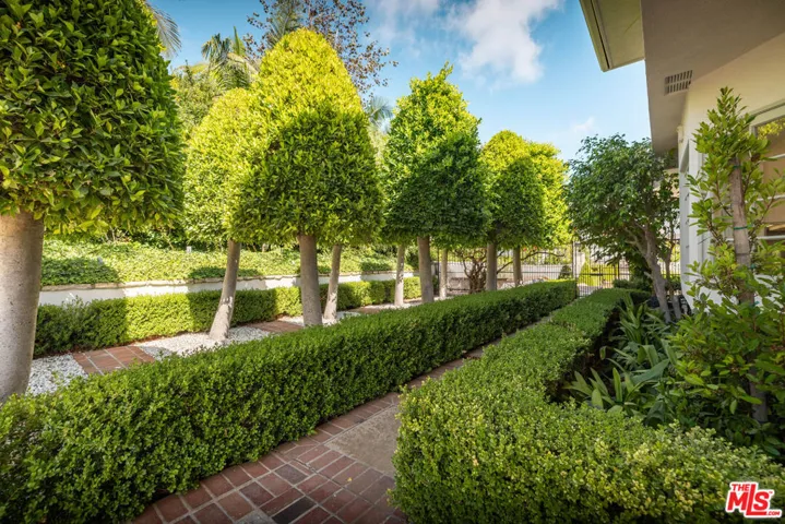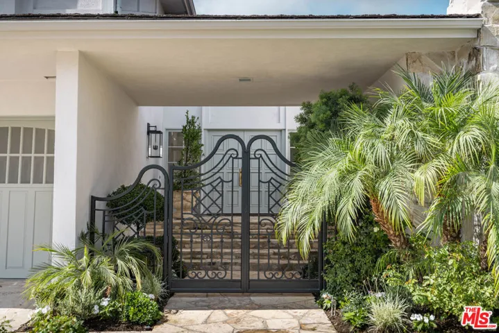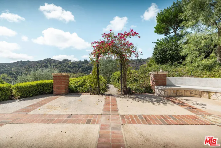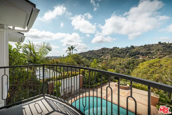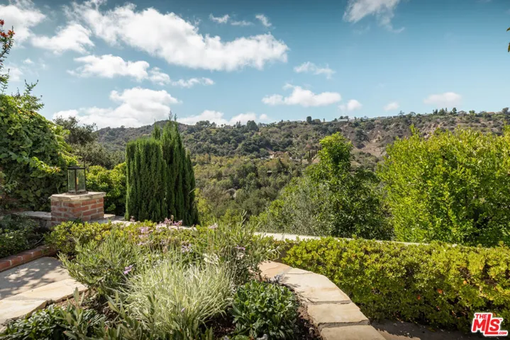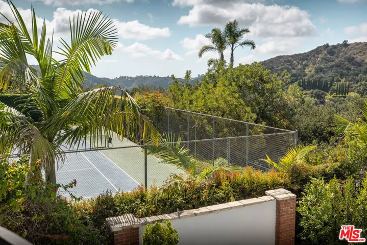 PRIVATE GATED BHPO RETREAT WITH WEST FACING VIEWS & PRIVATE POOL & TENNIS COURTS. This newly renovated +/- 4,000 SF home is the perfect family retreat, offering 4 bedrooms plus a library/den office with an ideal layout and thoughtful finishes. Set within a secure gated community just minutes from Sunset Blvd off Benedict Canyon, the property combines privacy, tranquility, and functionality. High ceilings welcome you into the living room, with new hardwood and tile flooring carrying throughout the house. An oversized primary suite and an additional en-suite master anchor the upstairs level, alongside two perfectly apportioned bedrooms. East-facing exposure fills the interiors with natural light from sunrise to sunset.Outdoors, the home feels like Tuscany, with insane mountain views, a romantic garden, hillside pathway, fruit trees, and a large swimming pool surrounded by tranquil greenery. The property includes a 3-car garage, laundry room, and access to two community tennis courts. Fireplaces are decorative only.