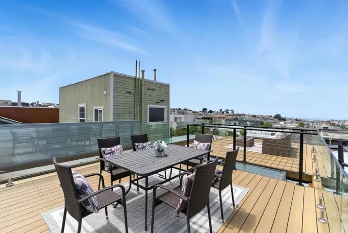 Experience this modern luxury design, meticulously renovated home in Inner Sunset. Step inside to a sun-drenched interior featuring white oak hardwood floors, expansive skylights, and architectural floating staircases with full glass railings, adding a sleek, open feel throughout the home.The gourmet kitchen, outfitted with a stylish island, sleek cooktop, built-in microwave, and seamless flow into the living and dining areas. A true highlight is the rooftop deck, accessible via a rain-sensor skylight system that blurs the line between indoors and out. Take in breathtaking panoramic ocean views ideal for relaxing,entertaining, or enjoying San Franciscos stunning sunsets.The primary suite offers a private retreat with a balcony, spa-like bathroom, and generous closet space. Enjoy whole house radiant heating, with individual thermostats on each level for year-round personalized comfort. On the lower level, a spacious family room with a wet bar opens through sliding patio doors to the backyard, perfect for indoor-outdoor living. An en-suite bedroom on this level offers flexibility for guests or multigenerational needs. Modern luxury, panoramic views, and a prime location this is more than a home, its a lifestyle. Dont miss the opportunity to make this Inner Sunset masterpiece yours.
