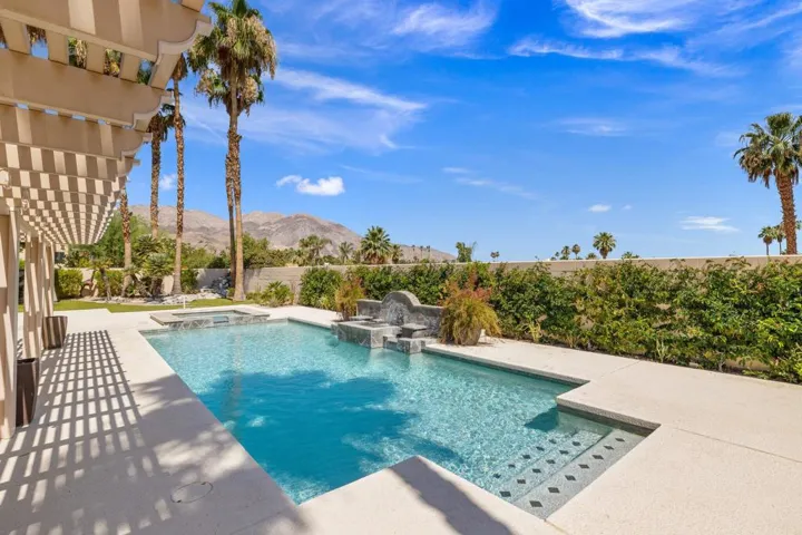 In the heart of South Palm Desert near Ironwood, Marrakesh, Reserve, Vintage & Big Horn golf clubs. Beautiful mountain views from private yard with private pool & spa. Three separate bedrooms with bath. Spacious main bedroom with fireplace and two separate bath & closet areas connected by large walk thru shower. Guest bedrooms have 1-king & 2-double beds. Separate office and direct access from 3-car garage into house. Living area with fireplace and family room off kitchen area.Close to Ironwood Park and grassy greenbeltAvailable January thru April 2026.