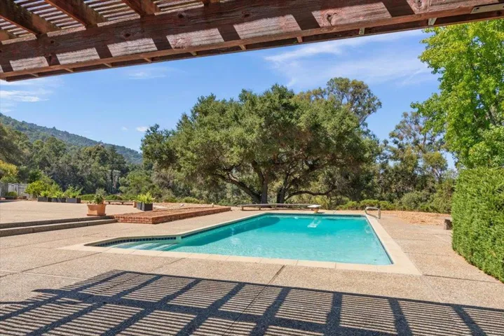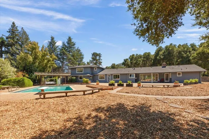 Discover serene & private living in this highly sought-after neighborhood of stately homes. Excellent Saratoga Schools! The expansive lot is approximately 1.43 acres. This 4 bedroom, 3 bath home boasts 1 master suite, 2 additional bedrooms, 2 full bathrooms, a spacious living room with high ceilings, dining room and a large kitchen all conveniently located on the main level. There is an additional Master Suite with a full bathroom on the second level, which can be used for guests, an in-laws quarters or as a private office. The exterior provides an abundance of outdoor entertaining space with a large backyard with a swimming pool, and views of the Saratoga Hills and Oak Trees. Amazing opportunity to live in a beautiful area of Los Gatos/Saratoga. The expansive lot is mostly flat. New owner can update existing home or build his dream home in this incredible lot in a beautiful neighborhood. There are about 15 different fruit trees in the property: apples, avocados, peaches, etc. This home is minutes to Hwy 9 and downtown Los Gatos and downtown Saratoga. Serenity and Peace awaits you in this one of a kind property!