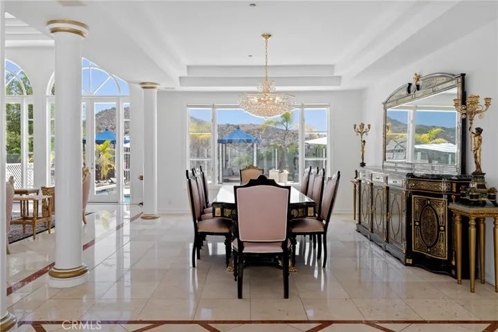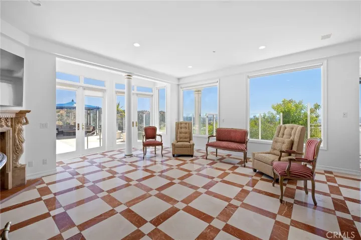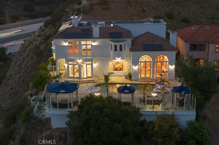 Angeles and Glendale, creating a living gallery where city lights become your evening entertainment and mountain backdrops define your daily experience. The main level flows seamlessly for grand-scale entertaining, featuring 21-foot ceilings in the living room, dining room, and family room. Floor-to-ceiling windows throughout maximize the spectacular views while flooding interiors with natural light. Rich hardwood floors and imported marble stone create an elegant foundation throughout, reflecting the impeccable attention to detail that defines this property.The spectacular master suite offers a true retreat with panoramic views from every window, creating a sense of floating above the city. The suite features a cozy fireplace for intimate evenings, a luxurious jacuzzi tub for ultimate relaxation, and an expansive walk-in closet that rivals the finest boutiques. Every detail has been carefully considered to create a private sanctuary within this exceptional home.The newly remodeled pool and spa create a private resort experience in your own backyard, perfectly positioned to capture both mountain and city views. The outdoor spaces have been designed as natural extensions of the interior living areas, providing multiple venues for alfresco dining, poolside relaxation, and outdoor entertaining against the dramatic backdrop of the Verdugo Mountains.