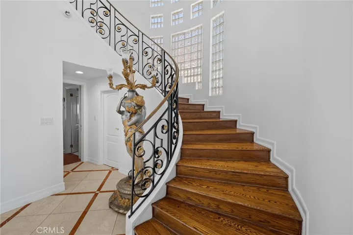 Nestled at the end of a private gated cul-de-sac in prestigious Glendale, 759 Foxkirk Rd represents an extraordinary opportunity to own over 5,700-square-foot architectural tour de force on nearly half an acre of meticulously landscaped grounds. This custom-designed estate, held by only its second owner for over two decades, offers an unparalleled combination of sophisticated luxury, breathtaking views, and ultimate privacy just minutes from downtown Los Angeles. From the moment you enter through the private gates, this Mediterranean-inspired masterpiece captivates with its soaring 30-foot ceilings in the marble entry foyer and a magnificent grand spiral staircase that serves as the home’s centerpiece. For ultimate convenience and accessibility, a private elevator provides seamless access between all levels of the home. Nearly every room frames panoramic vistas of downtown Los