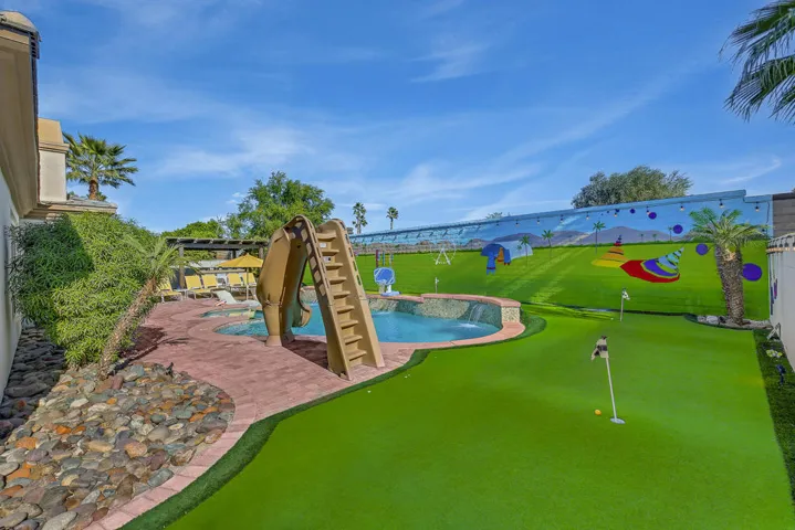 Discover the Ultimate Desert Escape in Montage!Step into this fully renovated six-bedroom showstopper, designed from top to bottom with Airbnb guests in mind. With over $250,000 in luxury upgrades, this home delivers the perfect blend of style, entertainment, and resort-style amenities.Inside, you’ll find stunning designer decor and a high-energy climate controlled game room loaded with arcade-quality entertainment. Thoughtfully designed for families and groups, the layout includes a private master suite with a cozy adjacent kiddy bedroom–perfect for parents traveling with little ones.Step outside and let the fun take over–dive into the sparkling pool with its exciting water slide, chill out with dual misting systems that keep things cool both in and out of the water, and challenge your crew to a round on the 8-hole mini golf course. Enjoy your very own Bocce Ball/Soccer/Cornhole arena–an all-in-one backyard playground under the desert sun.’Perfectly located just a short walk to the Polo Grounds–home of Coachella and Stagecoach, this home sits in one of the top-performing Airbnb neighborhoods in the Coachella Valley for six straight years. You’re also minutes from world-class golf, the Indian Wells Tennis Garden, and iconic Joshua Tree.Tucked inside a safe, gated community where short-term rentals are fully permitted, this property offers not just unforgettable experiences–but serious passive income potential.Whether you’re seeking the ultimate vacation retreat or a high-yield investment, this Montage gem checks every box. Luxury. Location. Lifestyle. This is the one.