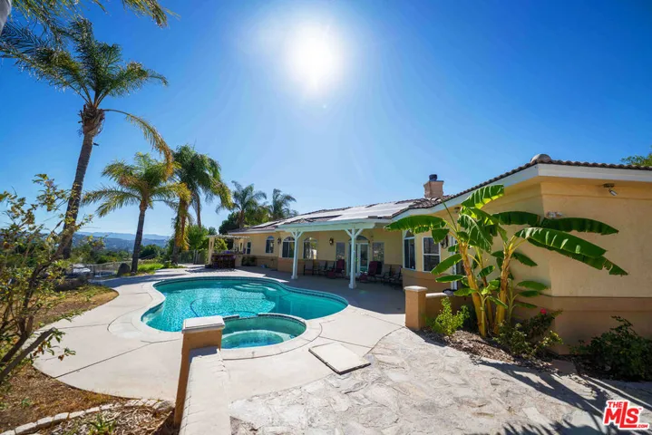 Stunning 5-Bedroom Single-Story Pool Home with Amazing View & Outdoor Living in Canyon Country! This spacious 5-bedroom, 3-bathroom single-story pool home offers comfort, style, and resort-like amenities, and an amazing view. Inside, you’ll find an open floor plan with abundant natural light, a welcoming living room with a cozy fireplace, a bright dining area, and a family room perfect for gatherings. The kitchen features ample cabinetry, counter space, and modern appliances. The primary suite includes a walk-in closet and a private bath with dual sinks and a soaking tub. Step outside to your own private retreat! The grounds offer exceptional privacy, mature fruit trees, built-in stone outdoor cooking areas, and beautifully handcrafted stone stairs. Enjoy a sparkling pool ideal for relaxation and entertaining year-round. Additional highlights include central A/C & heat, laundry area, and an attached 3-car garage. Conveniently located near schools, parks, shopping, and freeway access, this home blends comfort with outdoor living at its best.