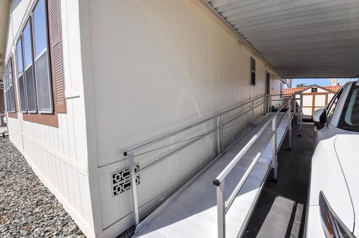 Beautifully renovated home located in one of East County’s most desirable and rare resident-owned, non-profit senior 55+ communities. This well-managed and impeccably maintained neighborhood offers resort-style amenities including a private dog park, pool, spa, clubhouse, and a vibrant calendar of social activities. With one of the lowest buy-ins in the area-just $6,000 (fully refundable upon sale) and a monthly space rent of only $640, this community is as affordable as it is welcoming. The home itself has been thoughtfully updated inside and out. Upgrades include a new roof (2024), new HVAC system with AC condenser (2023), new appliances and sink, new laminate flooring, and new Tuff shed. The spacious primary suite features an en-suite bathroom with a soaking tub and a generous walk-in closet. A built-in ramp in the carport area provides easy, convenient access to the front door. The private lot offers the perfect space to relax, BBQ, or entertain while enjoying peaceful sunsets. Additional highlights include a large 2-car covered driveway and convenient visitor parking directly across from the home. Great location has easy access to shopping, restaurants, and more.