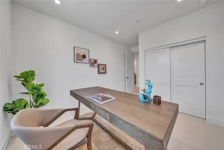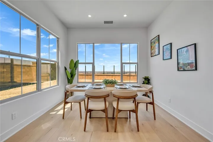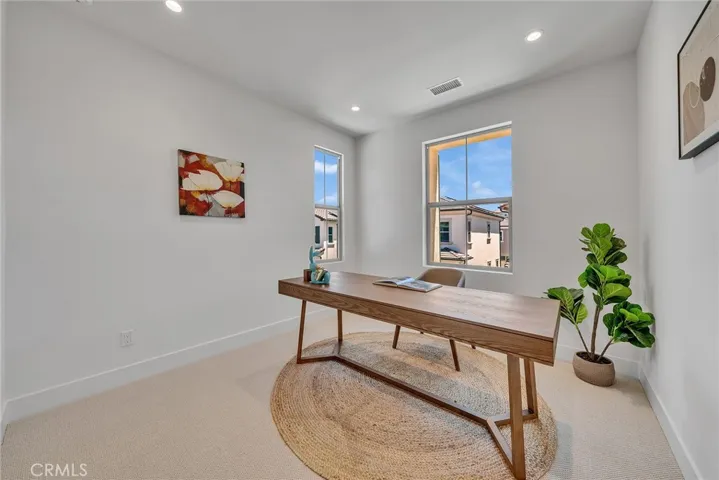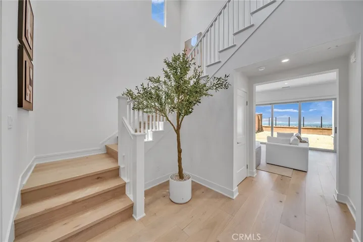 The two-story layout boasts a modern open staircase with soaring high ceilings that create a bright and spacious atmosphere. Additional upgrades include premium flooring, plush carpeting, upgraded kitchen cabinets, exquisite Taj Mahal quartz countertops, designer bathroom tiles, and sliding glass doors that lead to a backyard oasis with spectacular views.