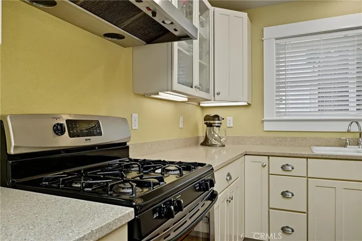 French doors lead to the concrete patio and a private, terraced backyard. The fenced, landscaped yard is on sprinklers, making it easy to enjoy outdoor living and entertaining.
