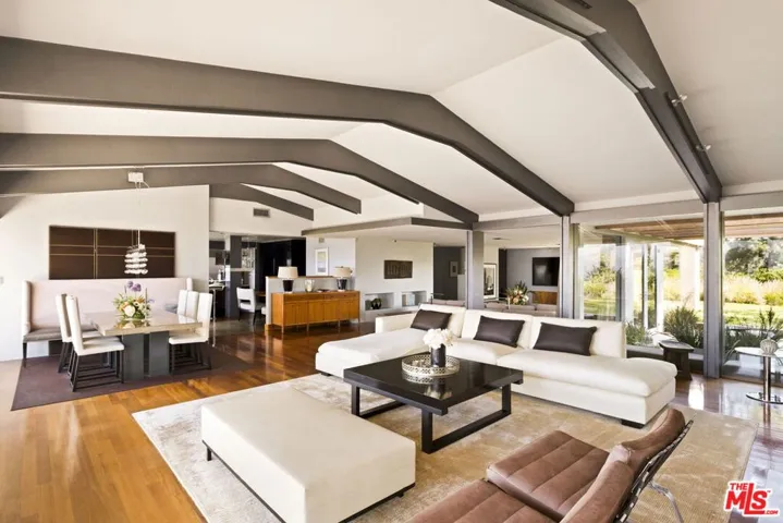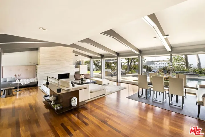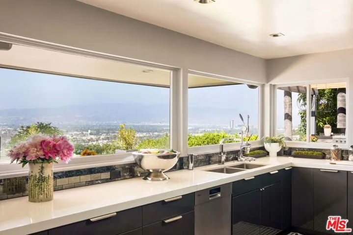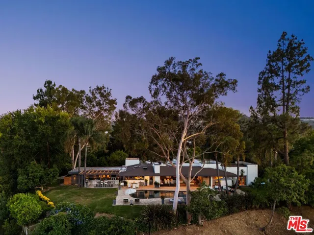 Your own promontory! Inhale, let it out slowly, take a deep breath, you’re home. You will feel immediate relief as the gates begin to close, leaving the outside world behind. As you wind up the gentle curves of the driveway you will gaze at the blooming array of trees and foliage. Olive, eucalyptus and citrus line the private drive to your front door. Atop the property resides a single-level modern dwelling shrouded in privacy. As you enter wood accents and concrete floors welcome you into the home. Before you take a tour of this elegantly remodeled home you catch a glimpse of the sweeping views of the San Fernando Valley. You can’t help but gasp and say “WOW” that’s incredible – as you make your way to a view you have never experienced before.”Magical”, “stunning”, “jaw dropping” – are all words I have heard uttered. Sweeping 180 degree views are simply breathtaking. The city below, the mountains, the planes in the distance, you can see it all, yet it’s a world away. Back in the house – floor to ceiling glass windows and aluminum-clad doors frame the open interior spaces allowing the natural surroundings and sunlight into every room. Step-down into a large family room perfect for lounging and enjoy the adjoining outdoor patio with a jasmine covered trellis. The spacious living room with a stone-clad fireplace flowing into the dining area offers an ambience of comfort and the best for entertaining, all while taking in the epic views. The chefs kitchen is spacious and laid out for optimal cooking, complete with a Viking 6-burner dual oven range, Sub-zero refrigerator, warming drawer and pizza oven. You will enjoy the built-in banquette seating area, walls of custom cabinetry and a walk-in pantry. The views while cooking are insane! Slide open the windows and pass the pizza to your outdoor guests! On one side of the house you have the primary suite – graciously sized and a private retreat. Peaceful and calm with views to the outdoor greenery. The primary bath offers a 2-person shower, dual sinks, custom cabinetry and a giant soaking tub with a massive picture window and views to the garden. On the other side of the house you have 3 bedrooms each enjoying its own special view of the outdoors and one full shared bath.The outdoor spaces are magical. The vast grassy lawn encircles the house and is surrounded by an array of greenery. Tall palm trees, mature olive trees and an orchard of fruit trees inc. lemon, grapefruit, apple and avocado. The sparkling & heated swimming pool sitting atop the property creates a resort-like atmosphere. Lounge chairs, a fire pit, umbrellas and outdoor searing embellish your relaxation. An outdoor kitchen with BBQ, sink, fridge, counter space and storage is a great spot for summer dinners. Topping it off is an outdoor shower (where no one can see you!). A “doll house” preciously sitting by itself in the grass, covered in flowering vines, is a welcome abode for the kids to hideaway or for the adults to play. With electricity, windows and finished flooring you will find many uses for this adorable structure. 3-car garage with EV charger and laundry offers a plethora of space for parking and storage. There is a mid-level parking area for gardeners and visitors hence you have ample parking on site. Homes on this stretch of Amanda Drive don’t often change hands. A rare opportunity awaits.