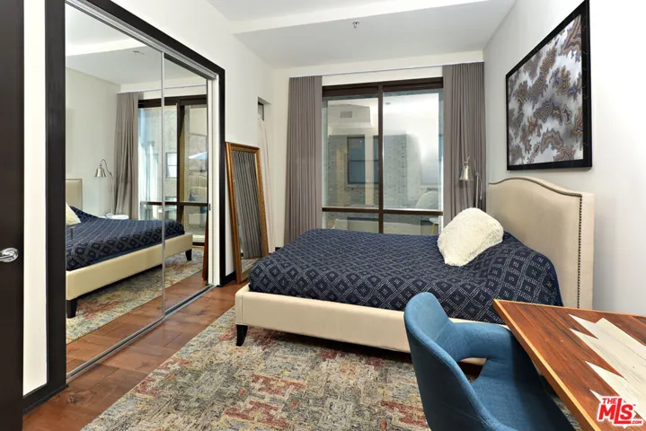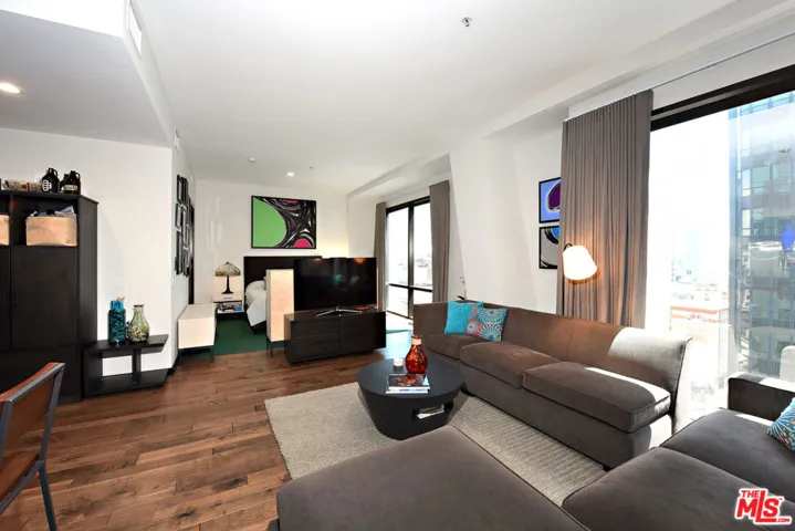 Stunning corner 2b/2b high-rise condo with dramatic floor to ceiling windows and panoramic views of Downtown Los Angeles from the 12th floor. This rare corner unit features nearly 1250sf of living space, tall 11-foot ceilings and upgraded hardwood floors throughout. Fully equipped with brand new Washer & Dryer, modern kitchen with stainless appliances and breakfast bar. Primary open plan bedroom area (or office) has large windows, an ensuite bathroom with dual sinks and a massive closet. Second bedroom is fully enclosed with a private bathroom and a large closet. There are custom roller shades as well as blackout curtains throughout the entire unit, and upgraded lighting. Includes 1 parking space in the building. City living at its finest with amenities including 24/7 staffed front desk, concierge service, gym, lounge/game room, and roof deck with BBQ, fire pit, and skyline views. Located in the heart of the Financial District of DTLA, within blocks of Whole Foods, 7th & Fig, The Bloc, LA Athletic Club, Hotel Figueroa, Wilshire Grand, Crypto Arena, FIDM, LA Live, Grand Central Market, The Broad, Walt Disney Concert Hall, The Conrad, Grand Park, and more. Rent includes water, trash, gas.