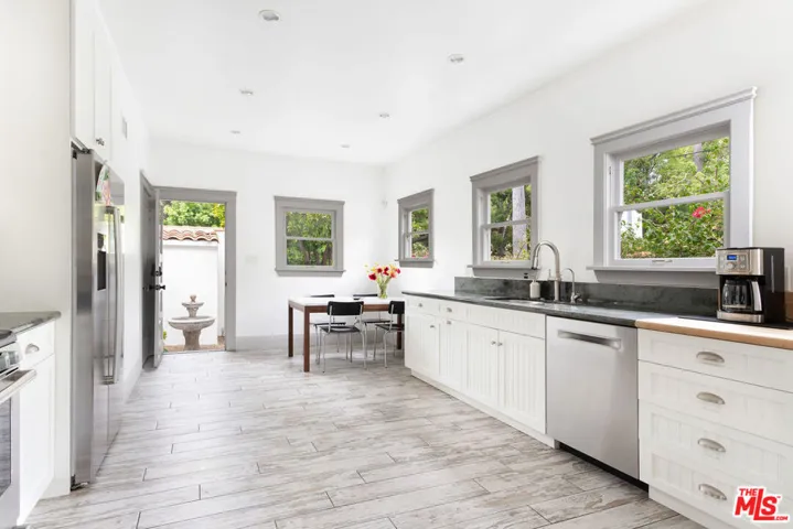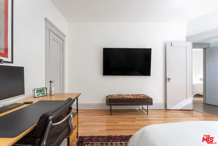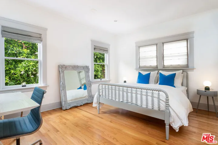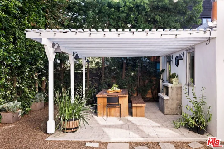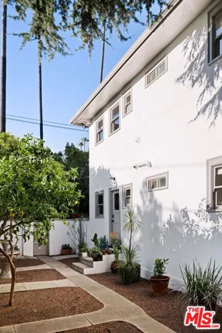 Located in the coveted neighborhood of the historic Hollywood Grove, this classy apartment is situated on the MAIN FLOOR of a privately gate DUPLEX and pairs old Hollywood elegance with functional modernism and style. Aside from its generous layout and original architectural details – such as a Batchelder wood burning fireplace, classic hardwood floors, and French doors and windows – you will find a spacious gourmet kitchen with oversized pantry and breakfast area, a light flooded dining room, a beautiful living room facing the private yard, and an office/den with a cozy alcove. The apartment features 3 bedrooms and plenty of closet space in all bedrooms. There is also the lush and peaceful private patio by the main entrance for that much needed wind-down time after work, a thriving front garden grown into wild perfection, and a shared outdoor dining area with citrus trees and a fountain by the kitchen entrance on the other side of the building – ready for your fresco get-togethers and small dinner parties. Breathtaking hiking trails up the road and the popular Franklin village with coffee shops, restaurants, bars and a market just a short stroll away – all situated in the secluded Hollywood foothills yet within a short driving distance to Disney, Universal, Paramount, Netflix, and all that LA’s best has to offer. Weekly landscaping service is included, and the tenant pays utilities. Please DO NOT DISTURB tenant. Lease includes limited-time promotion: 1 month free on 13-month term. Net effective rent is $7615,- /month for 13 month term. Rent reverts to $8250,- /month after promo period. Please note it will be rented UNFURNISHED! Thank you!
