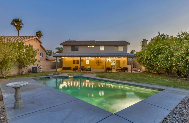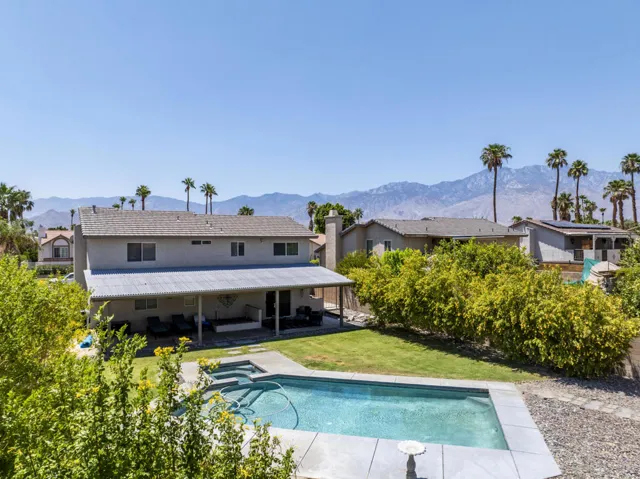 Situated on Cathedral City’s iconic ”Candy Cane Lane,” this tri-level home offers over 2,200 sq. ft of living space, 3 bedrooms, and 2 bathrooms with stunning mountain views from both the upper and lower levels. The spacious layout includes a comfortable primary suite and multiple living areas, perfect for entertaining or relaxing. Step outside to a private backyard retreat with a sparkling pool and spa, plus a charming storage shed for hobbies or extra storage of holiday decorations. Owned solar adds energy efficiency, making this home as practical as it is inviting. Located in one of the desert’s most festive and sought-after neighborhoods, this property blends community spirit with resort-style living – an opportunity rarely available on this celebrated street.