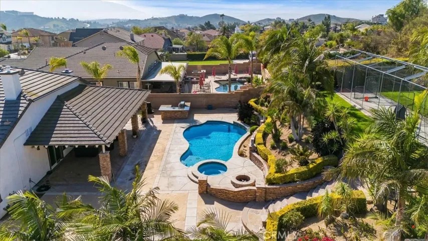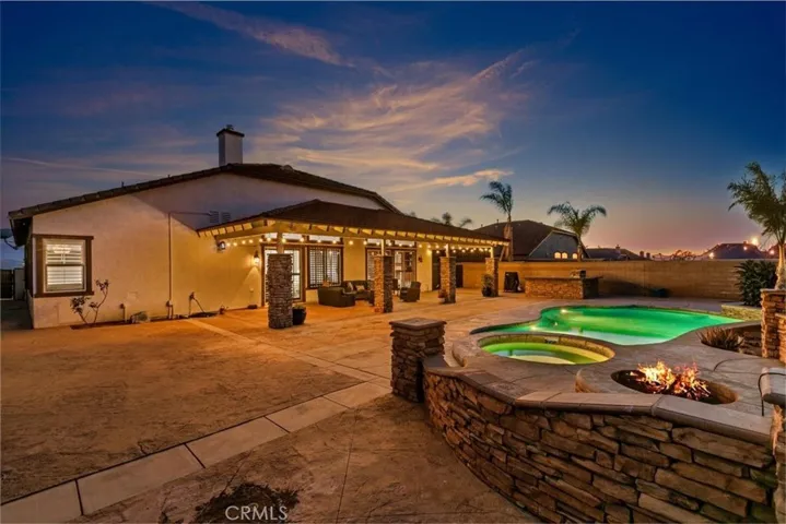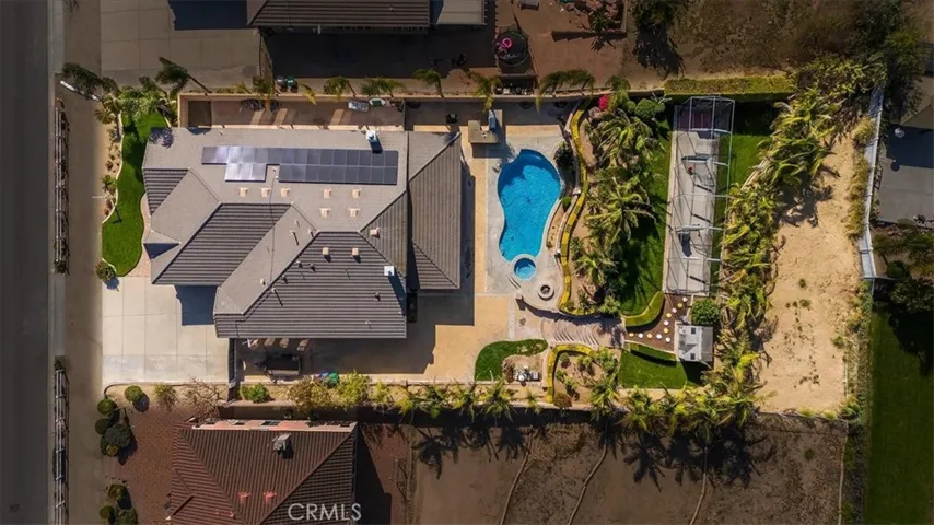 MAGNIFICENT Highly Sought After Norco Hills Single Story Home with RV PARKING, PAID OFF SOLAR, POOL & SPA . Spectacular home with elegant & high end upgrades that you will fall in love with. Beautiful curb appeal with lush landscaping. The Grand entry leads you to high 20 foot ceilings as you walk into this expansive home. This home features an office/bedroom with a Jack & Jill bathroom separated from the rest of the bedrooms. If you like to entertain you have an oversized formal dining room & an additional family room/pool table/gym area. Love to cook? Kitchen has been completely renovated with high end CUSTOM FEATURES. The custom island has a built-in kitchen table and seating area that overlooks the family room area. GOURMET KITCHEN features SUB-ZERO built in refrigerator, beautiful custom cabinets INCLUDING OVER THE RANGE, built in microwave, dishwasher and 48 inch stainless steel Fulgor Milano range that includes 6 burners and a griddle with a double oven. The quartzite countertops and the custom tile backsplash add to the elegance of this home. There are tons of cabinets with extra storage including a Walk-in Pantry . Seller has installed all newer engineered wood floors & beautiful travertine tile. The Primary bedroom has high ceilings, and a gas fireplace for ambiance and warmth. Oversized walk-in closet allows a lot of space for your wardrobe. The Primary bathroom has been completely remodeled & features dual sinks, custom quartzite countertops, large jetted tub. Sliding glass doors lead you to your oasis backyard to the view of pool and a nice breeze. There are plantation shutters through-out adding character & charm to this home. Indoor laundry room with custom cabinets and a sink. As you step outside you will fall in love in an instant. The breathtaking backyard has a gorgeous pool & spa that includes a Baja shelf perfect for soaking in. Beautiful stamped concrete all around that includes drains. The large attached patio is approx. 20 feet tall and is a perfect place to entertain guests. There is a built-in BBQ area making outdoor gatherings a breeze. As you walk up the elegant staircase to the upper portion, you will find the beautifully landscaped area large enough for many uses and animals. Located just minutes from the Hidden Valley Golf course, Pumpkin Rock Hiking trail & Ingalls Equestrian center. Paid off solar has 20 panels including a Tesla power pack, newer exterior paint. Plenty of RV Parking