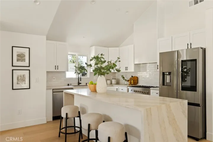 A fully reimagined luxury residence blending modern elegance with mountain charm. The main home offers 4 bedrooms and 4 bathrooms, while the permitted ADU adds an additional 1 bedroom and 1 bathroom with its own private entrance. Each bedroom features its own private bathroom, providing comfort and convenience for families and guests alike. The open-concept layout seamlessly connects the family room, dining area, and gourmet kitchen, where natural light pours in to create an inviting ambiance. From the deck and balcony, enjoy sweeping views of the majestic Sierra Madre mountains. One bedroom is ideally situated at the front of the home with its own bath, perfect for multi-generational living or private guest quarters. Luxury appliances are included: a Samsung 3-Door French Door Refrigerator with Family Hub, Cosmo 5-burner gas range, dishwasher, and a Samsung extra-large capacity washer and dryer. Step outside your front door and take in the mountain views, while inside, every detail has been curated for both style and function. This rare offering combines modern sophistication, flexibility, and the unmatched charm of Sierra Madre living.