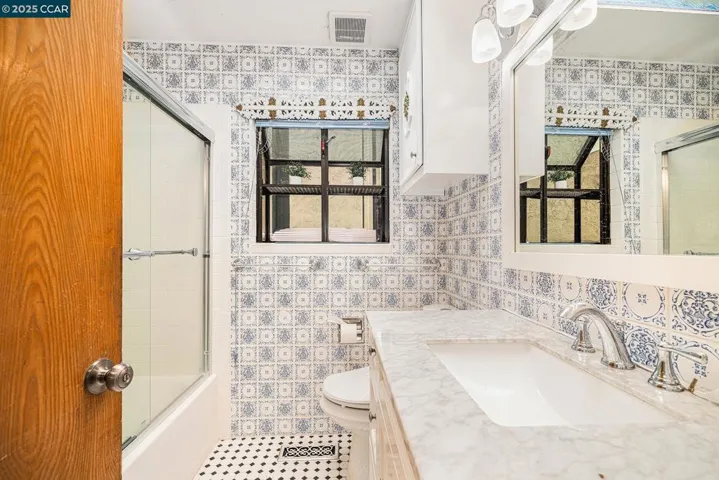 Gorgeous, Panoramic Views of the Bay Area! Invite yourself to this classic home in Tewksbury Heights with its unique flair of having its very own pool and pool house! Enjoy three large bedrooms: two with a view, and one with an en-suite and access to the sunroom. Natural light throughout, with large windows to watch the Bay Area shine at night. Kitchen, Hall, and Bathrooms have skylights for ample light as well. Hardwood floors in upper area. Updated baths and updated kitchen countertops. Laundry room downstairs with half bath for lower area. Backyard is terraced with nice greenery for lounging in front of the pool house, which has its own full bath and shower, possible entertaining area or living studio? Up to you! Large two-car garage with extra room for storage. Close to freeway access and minutes away to El Cerrito Del Norte BART station. Don’t miss this one!