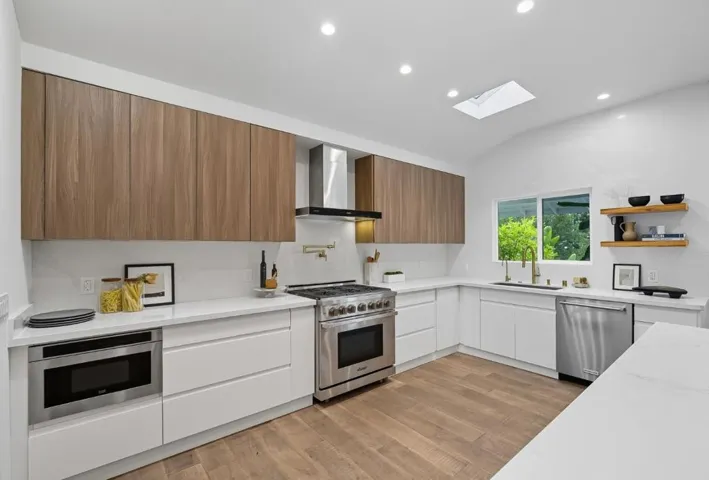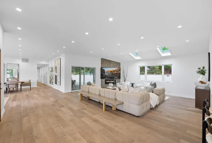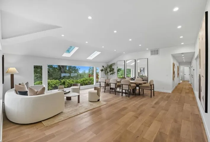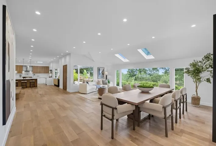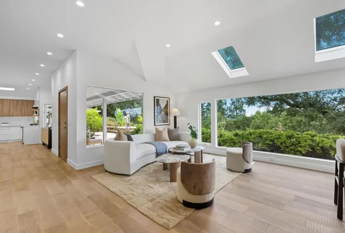 Perched on a private half-acre with sweeping views of Silicon Valley, this modern retreat blends city convenience with mountain serenity. The 3 bed, 2.5 bath home welcomes you with a light-filled open floor plan, soaring skylights, and warm engineered hardwood floors. A sleek modern kitchen with professional-grade appliances anchors the space, ideal for cooking and gathering. Recessed lighting, dual-pane windows, and an electric fireplace add to the elevated feel. A motorized gate provides privacy as you enter the property, leading to redesigned hardscape with concrete and pavers. The detached 2-car garage connects to the home with a breezeway, creating a seamless indoor-outdoor flow. Completely tucked away yet minutes from dining, shopping, and freeways, this is the rare home that feels like a getaway but lives like the city. Campbell Union schools: Alta Vista, Union Middle, and Leigh High. A must-see to truly appreciate the setting and style.