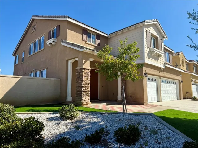 Located in a calm and quiet community next to Kaiser Hospital this SPACIOUS 5 Bed 3 Bath home features gorgeous tile floors in the first floor with upgraded kitchen cabinets and counter tops, a large living room, a down stairs bedroom with a full down stairs bathroom. Has well maintained luxury carpet upstairs with (4) large bedrooms, an office and a HUGE Loft. The upstairs also features an inside laundry room with sink. This home has nice sized easy maintenance back yard with concrete and a covered patio. A front yard with excellent curb appeal; turf instead of natural grass and corner lot home. (3) Car Garage. Centrally located near major shopping centers, schools and minutes from Moreno Valley mall.