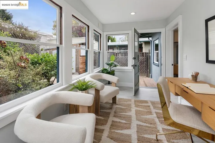 TRANSPARENT PRICE. Raised and set back from the street, this classic Craftsman pairs soulful character with fresh, practical upgrades. Warm living and dining rooms show off rich wood paneling, original built-ins, and Marvin wood-clad dual-pane windows that hush the outside world. The layout moves easily, while period details give the home a grounded, timeless feel. The kitchen offers real working room with ample counters and storage, ready for weeknight speed or relaxed weekend cooking. The refreshed, generously sized bath reads clean and current. A window-lined bonus room makes an inspiring home office, art studio, or play zone. Outside the garden is set for low-effort living: a fully paved patio for dining and lounging, raised garden beds for herbs and veggies, and two spacious, rock-solid storage sheds—ideal for bikes, tools, or a tidy workshop. Systems are dialed for confidence: earthquake retrofitting, newer attic insulation, mini-split air conditioning, tankless water heater, and a newer furnace. Location seals it. Everyday amenities, neighborhood parks, and local cafes within reach, reinforce the sense of a connected, welcoming community. With authentic charm and smart updates, 3826 Lincoln Ave delivers energized Oakland living—move-in ready and easy to love.