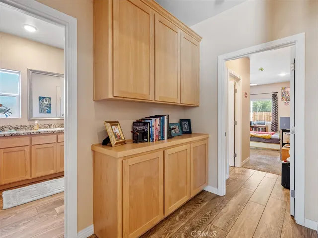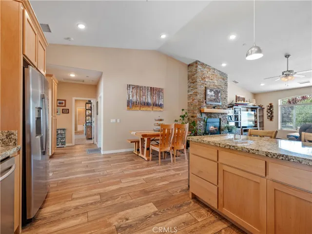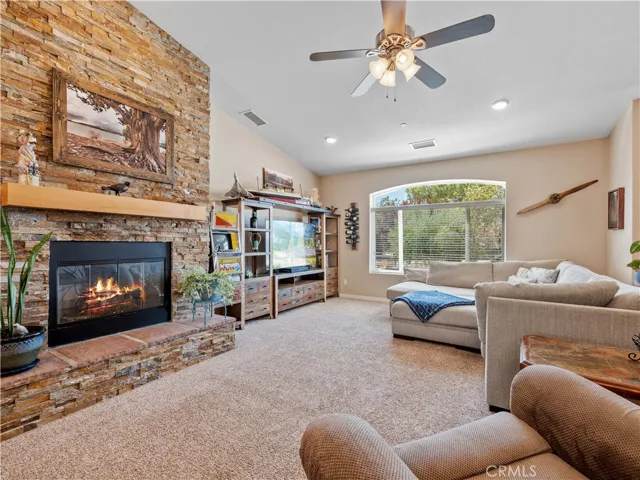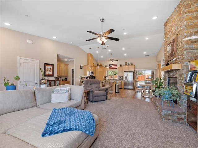 REDUCED TO SELL..Stunning POOL home in quiet, much sought after neighborhood, this one is a must see, you will not be disappointed. Upon entering this home, you are welcomed into a warm and inviting living area filled with natural light streaming through a large picture window. The spacious layout features vaulted ceilings, and a veneer stone fireplace with gas logs and raised hearth. Neutral -toned upgraded carpet blends seamlessly with rich wood-like tile flooring. The open floor plan leads effortlessly toward the kitchen which offers modern conveniences with thoughtful design elements creating stylish yet highly functional environment suitable for both everyday living and entertaining. Beautiful polished granite counter tops with stylish backsplash, pine cabinetry, complemented by sleek stainless steel appliances. The heart of the home features a beautiful oversized island, perfect for casual dining, or gathering with friends and family. The kitchen also offers walk in pantry and pendant lighting. Split floor plan with a large primary suite on one side of the home and a guest room, guest bath and junior suite with bath on the other side. The spacious master suite designed for comfort and relaxation provides a roomy walk in closet with luxury built in closet organizer with glass panel doors. En suite bath highlights dual sinks set in granite counter tops, walk in shower and a separate soaking tub/shower. The junior suite also displays custom closet organizer, granite counter tops in bath with ample storage, full tub/shower combination along with thoughtful details that add both charm and functionality. Indoor laundry with storage and sink, recessed lighting, ceiling fans in all rooms and 2 water heaters. The huge, oversized three car garage measures over 1,000 sq ft. with upgraded insulated garage doors, pull down attic access with ladder, ultra quiet genie garage door opener with my Q app, an abundance of LED flush mount lights and built in cabinets. The single garage slab height was built to easily convert into a room. Enjoy resort style living in your own backyard with a sparkling PebbleTec salt water pool, complete with stacked stone spa, soothing water features and elegant deck jet, with wifi controlled app. Covered cozy patio, RV parking with 30 amp service, tile roof and lots of concrete. Well manicured low maintenance front yard, 5 outside hose bibs, 6 outside plugs, including Xmas light outlet at eaves. Come and check this one out TODAY!!