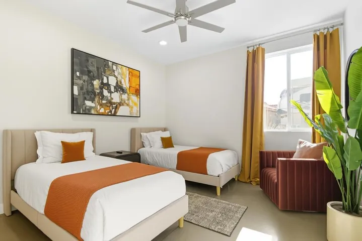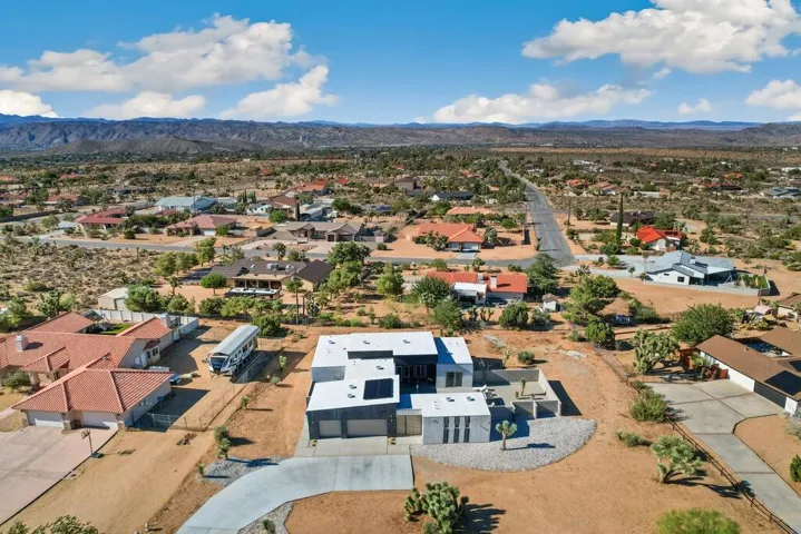 Enter into modern desert luxury with this custom home! This 4-bedroom, 4.5-bath home (including the private casita) blends style, comfort, and flexibility. Behind a custom gate, enjoy a spacious enclosed courtyard with multiple outdoor gathering areas–perfect for entertaining or relaxing under the desert skies. Inside, the dramatic open living room features soaring ceilings + designer finishes, and an entertainer’s dream kitchen with a large quartz island and premium stainless steel appliances. Additional highlights include a 3-car garage, RV parking, and eco-conscious upgrades such as 10 paid solar panels and a tankless water heater. After a day exploring Joshua Tree National Park, unwind on your private courtyard patio while enjoying breathtaking sunsets. Ideal as a personal retreat or short-term rental, this home delivers modern luxury and desert living at its finest–don’t miss this rare opportunity!