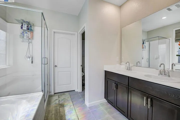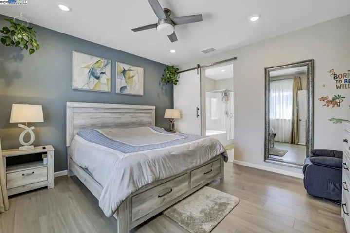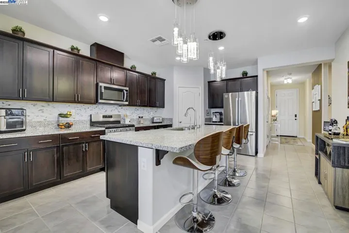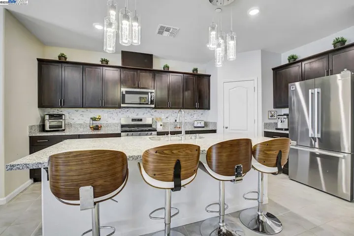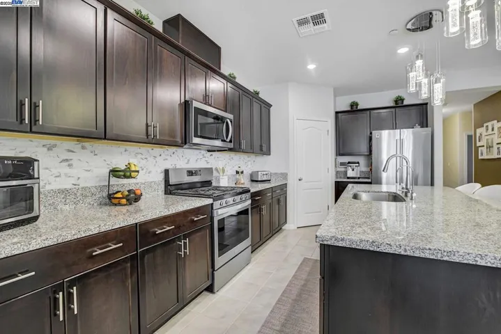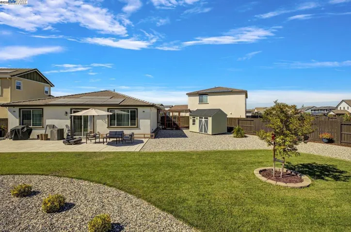 Spectacular 4-year “new” Meritage home on a premium 9,000+ sq.ft lot with no rear neighbors in the gated “Vines” community! This 3 bed/2 bath, 1,630 sq.ft home showcases nearly $75K in upgrades and an open, light-filled floorplan. A versatile guest/multi-purpose room features custom cabinetry, shelving, and LVP flooring, with a full bath nearby. The second guest room includes custom paint and built-ins, plus a convenient touch-down desk area. The upgraded laundry room adds custom cabinetry, shelving, and backsplash. The expansive great room highlights a stunning kitchen with espresso cabinets, granite counters, stainless appliances, and modern lighting, flowing into a spacious family and dining room with tile flooring and custom draperies. The owner’s suite offers upgraded LVP, custom draperies, a large walk-in closet, and spa-like bath with dual sinks, Roman tub, and step-in shower. Energy-efficient with owned solar, tankless water heater & 2-car garage with storage. The backyard steals the show with a custom patio, premium shed, retaining wall, and “Catio”! Perfect for relaxing or entertaining, this home truly feels like a model—combining comfort, elegance & convenience, just minutes to Hwy 4/80, Costco, Sprouts & The Streets of Brentwood.